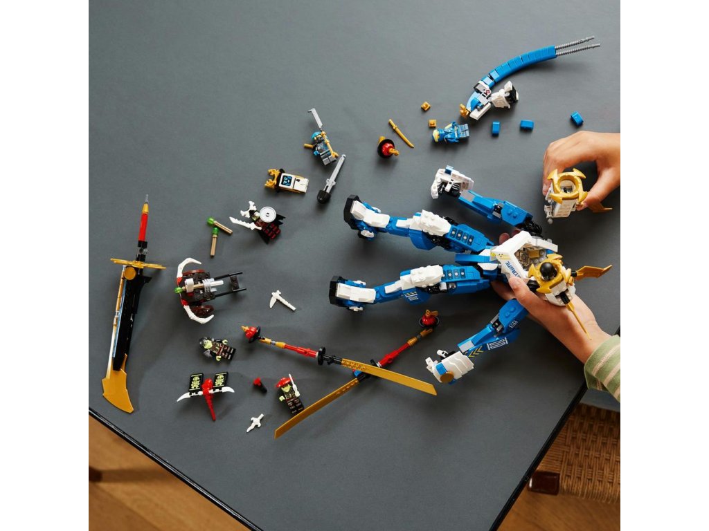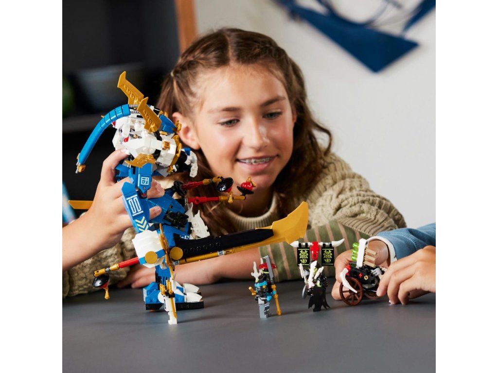 - Bojový robotický oblek plný akcie – Fanúšikovia LEGO® môžu v meste NINJAGO® zvádzať súboj so setom LEGO NINJAGO Jayov titanský robot (71785)
