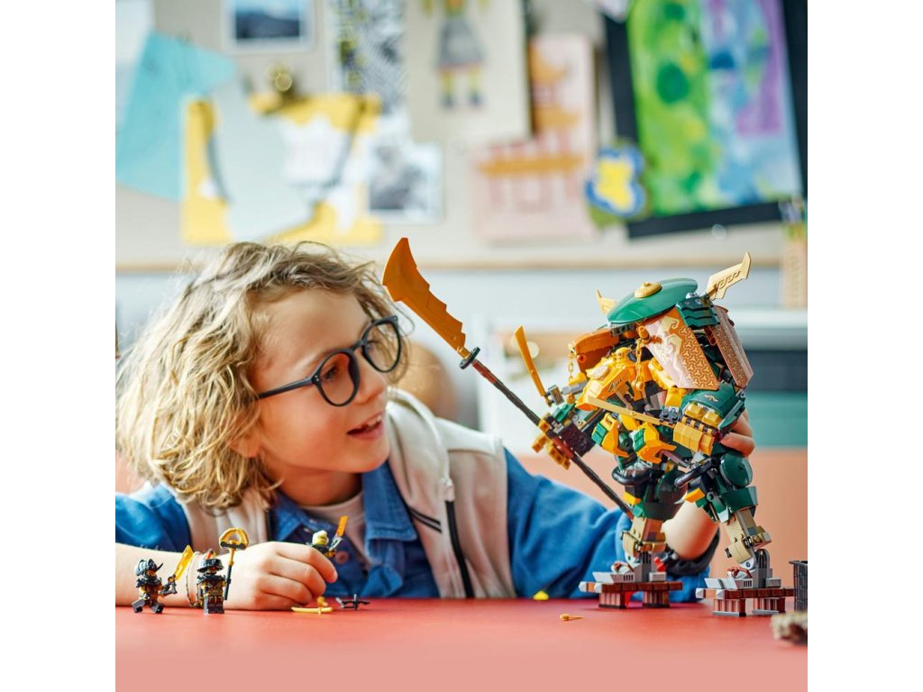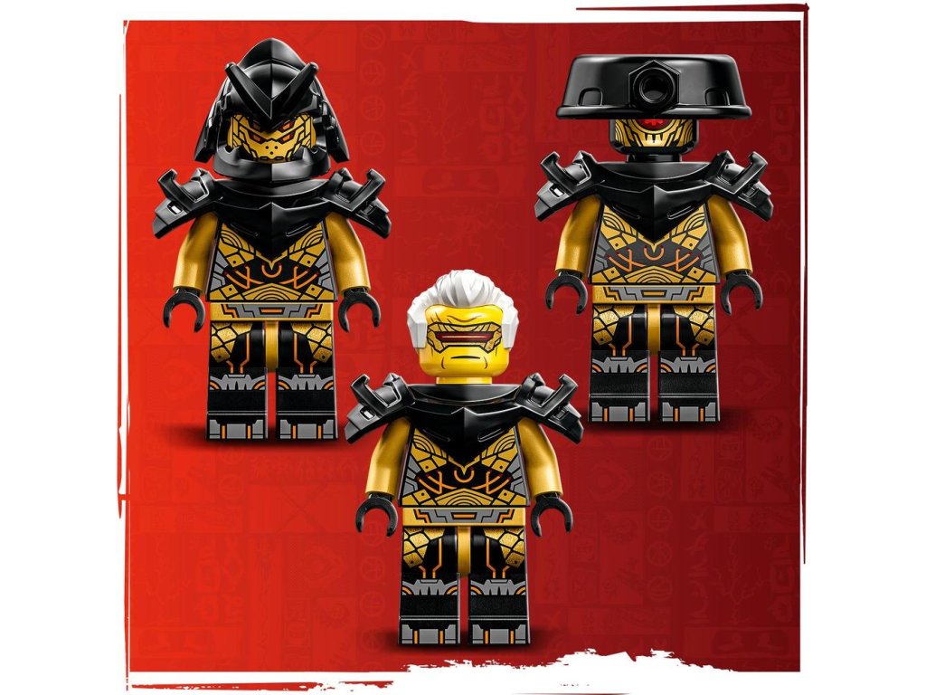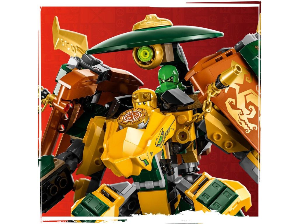 Deti od 9 rokov si môžu zinscenovať napínavé scény z tréningu a súbojov v televíznom seriáli NINJAGO® Dragons Rising s Lloydom, Arin a ich tímom nindžovských robotov (71794). Táto úplne nová stavebnica obsahuje polohovateľné robotické obleky nindža majstra Lloyda a jeho študenta Arina, ktoré sa dajú spojiť a vytvoriť 1 väčší a dobre vyzbrojený robotický oblek pre nekonečné herné možnosti. 5 minifigúrok na epické súboje Tento model robota obsahuje 5 minifigúrok. Majster nindžov, Lloyd, je vyzbrojený 2 katanami a jeho nindža študent Arin má 2 katany a hák. Spoločne môžu bojovať proti zlému triu – Raptonovi, ktorý je vyzbrojený cisárskym mečom, Veliteľovi cisárskej stráže, ktorý prichádza s palicou, a Cisárskemu generálovi s cisárskym mečom. Táto stavebnica poskytuje deťom všetko, čo potrebujú na hru na postavy v nekonečných akčných súbojoch. Aplikácia LEGO® Builder Aplikácia LEGO Builder prevedie vás