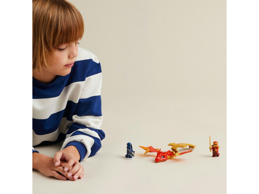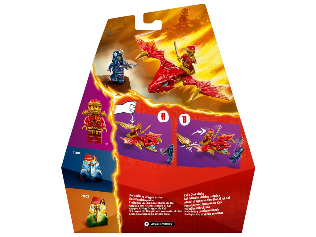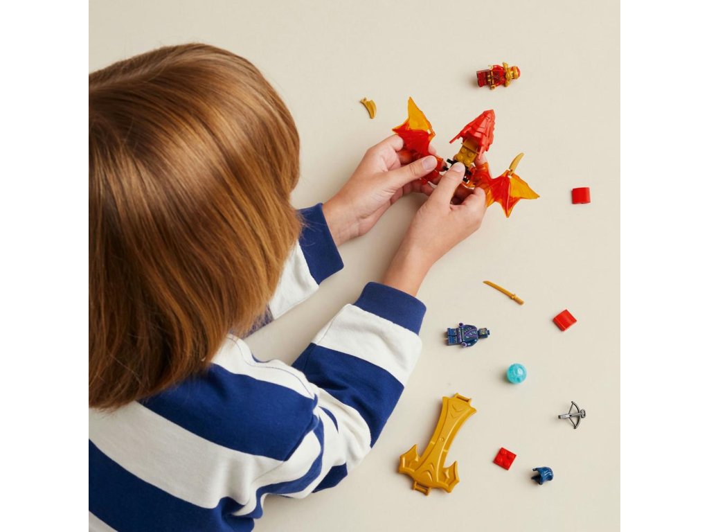 Chlapci a dievčatá od 6 rokov sa môžu zahrať na dobrodružstvá z 2. série televízneho seriálu NINJAGO® Dragons Rising so stavebnicou LEGO® Kai a útok draka. Deti sa môžu ponoriť do stavby úplne prvej akčnej hračky s drakom LEGO NINJAGO predtým, než drakovi zaklapnú zlatý chvost a sledovať, ako sa vrhne do akcie.