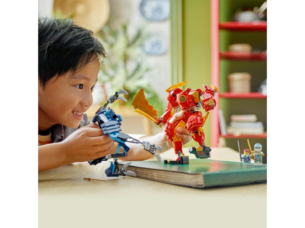 Tento červený robot sa dodáva so 4 minifigúrkami – Kaiom a Zaneom s prvkami meča katana, Jordanou s prvkom meča a Bojovníkom vlčej masky, takže deti si môžu zahrať napínavú nindžovskú akciu. Stavebnicu možno zostaviť aj pomocou aplikácie LEGO® Builder, ktorá vás a vaše dieťa prevedie jednoduchým a intuitívnym staviteľským dobrodružstvom.