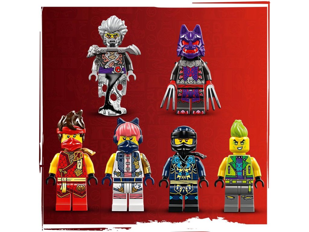 Táto zostaviteľná nindžovská hračka pre deti obsahuje 6 NINJAGO minifigúrok. Ninja Kai a Sora vo svojom turnajovom brnení doteraz nevídanými krátkymi mečmi katana bojujú s partiou zloduchov: Cinderom, Bojovníkom vo veľkej maske, a exkluzívne pre túto stavebnicu, Zlým Jayom a Toxom.