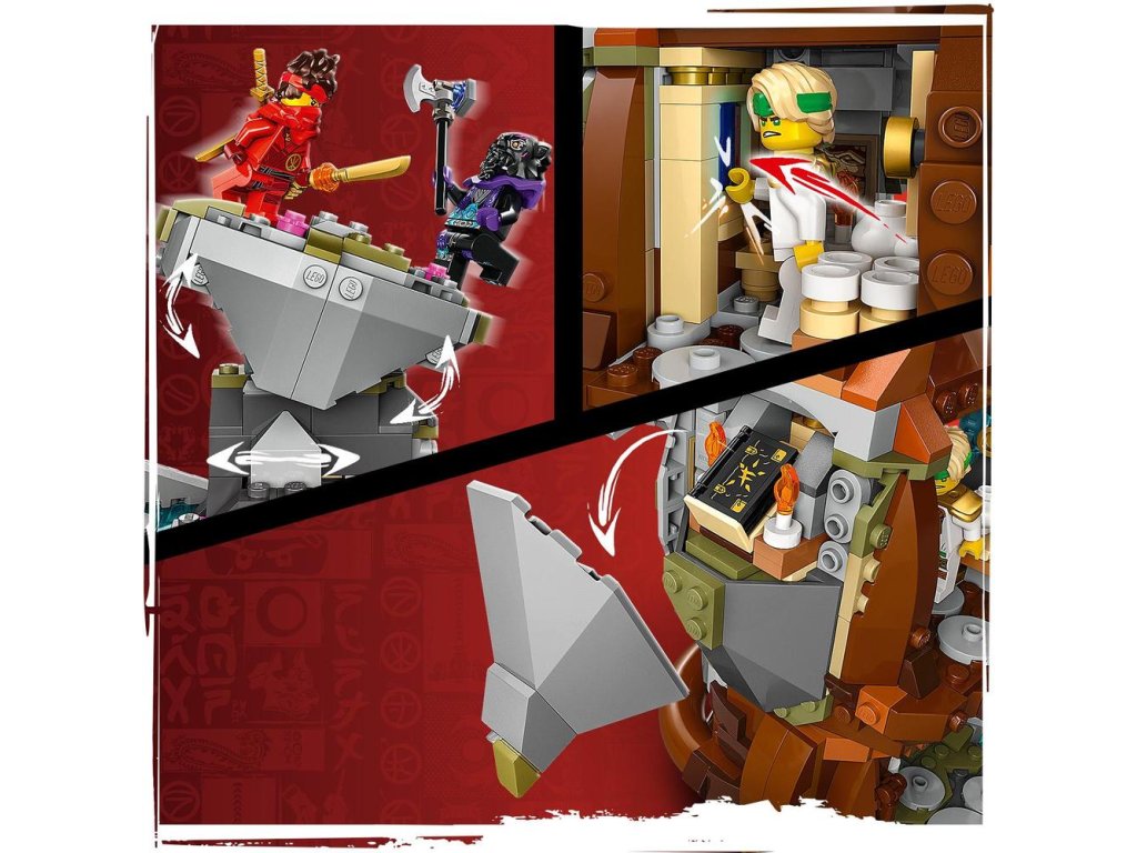 Táto nindžovská stavebnica obsahuje dračí kameň, miesto na tréning, ktoré možno presunúť zo strany na stranu súboja, vodopád, rozkvitnutý čerešňový strom, knižnicu so zvitkami, knihami a čajovou súpravou a tajnú miestnosť, ktorú môžete odhaliť odsunutím kníh v knižnici.