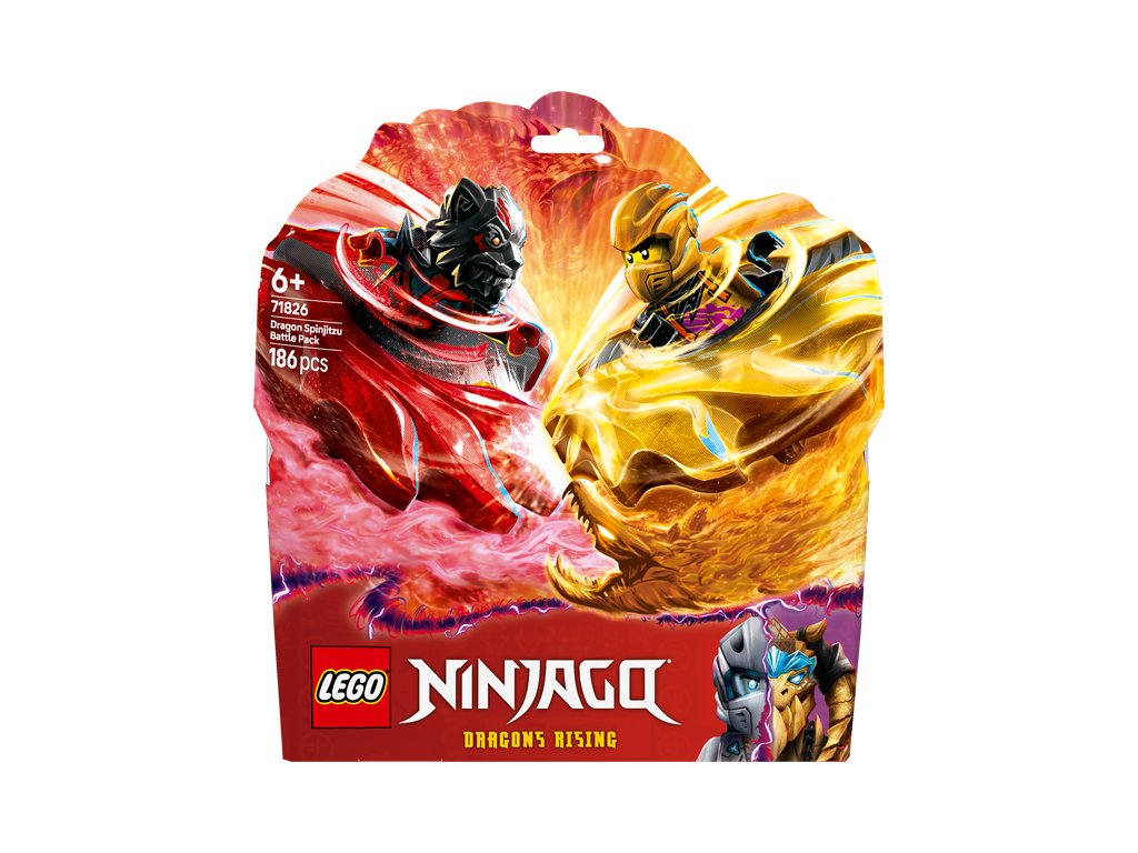 S akčnou hračkárskou stavebnicou Bojový balíček dračieho Spinjitzu (71826) sa chlapci a dievčatá od 6 rokov môžu zahrať na parádnu akciu z 3. série televíznej relácie NINJAGO® Dragons Rising. Táto malá hračkárska stavebnica LEGO® obsahuje chrám v bojovej aréne, 2 minifigúrky Arina a Rasa a 2 hračkárske dračie spinjitzu spinnery, ktoré môžu deti umiestniť do odpaľovačov a strieľať ich proti sebe počas súbojov.