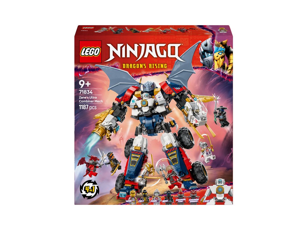 Chlapcov a dievčatá od 9 rokov čakajú nekonečné herné možnosti popri hre na napínavé scény z 3. série televízneho seriálu NINJAGO® Dragons Rising so Zaneovým ultrakombo robotom 4 v 1 (71834).