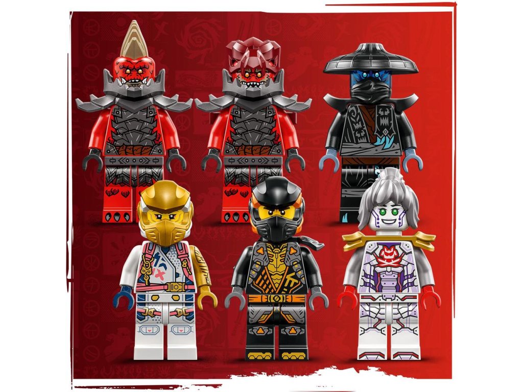 - 6 minifigúrok LEGO® NINJAGO® – Táto dobrodružná stavebnica obsahuje nindžov Soru a Colea a ich spojenkyňu Pixal, ktorí sa postavia podlej trojici: Noktovi, Dračiemu bojovníkovi a Dračiemu výskumníkovi