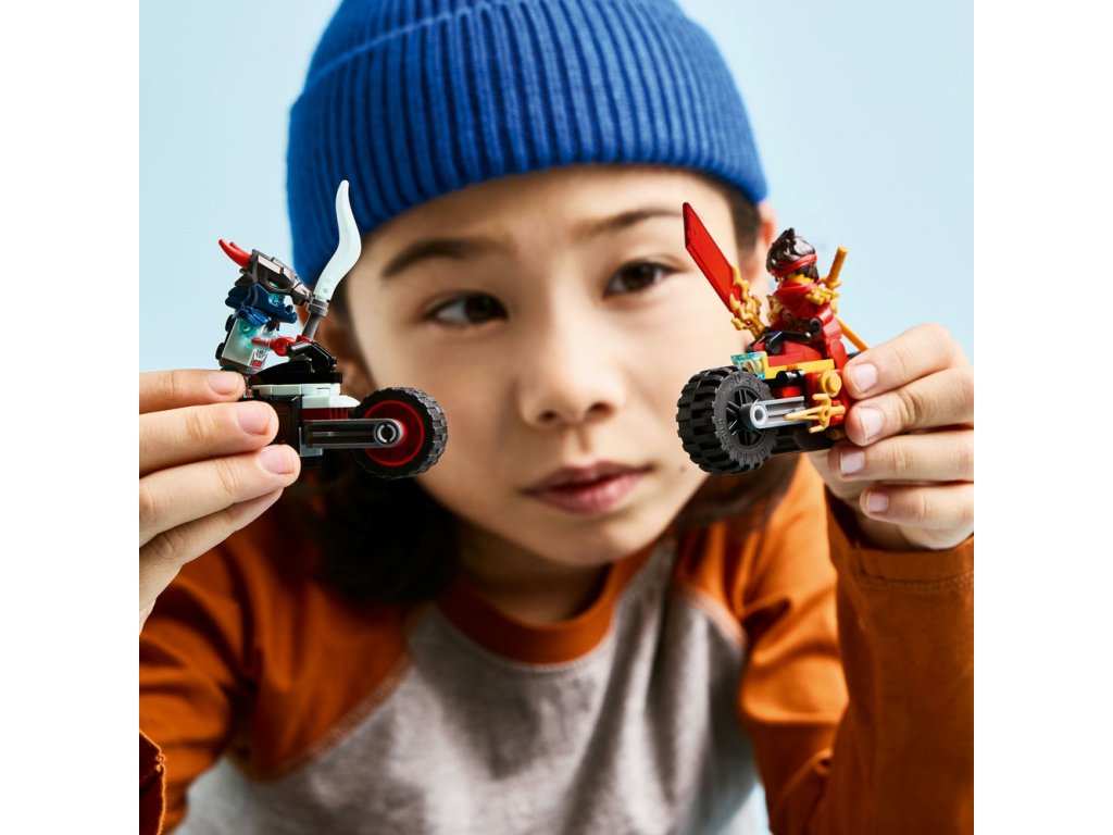 - Hračkárska motorka – Chlapci a dievčatá od 6 rokov si môžu zinscenovať preteky aj bitky z 3. sezóny TV relácie NINJAGO® Dragons Rising s modelom Kai a preteky na motorke