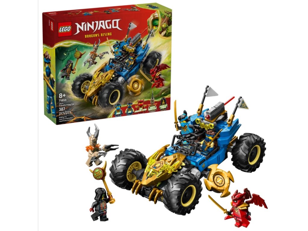 - HRAČKÁRSKE PRETEKÁRSKE AUTO PRE DETI – So stavebnicou Jay a jeho transformačné auto (71856) sa môžu chlapci a dievčatá od 8 rokov zahrať na rýchlu akciu zo 4. série televízneho seriálu NINJAGO® Dragons Rising