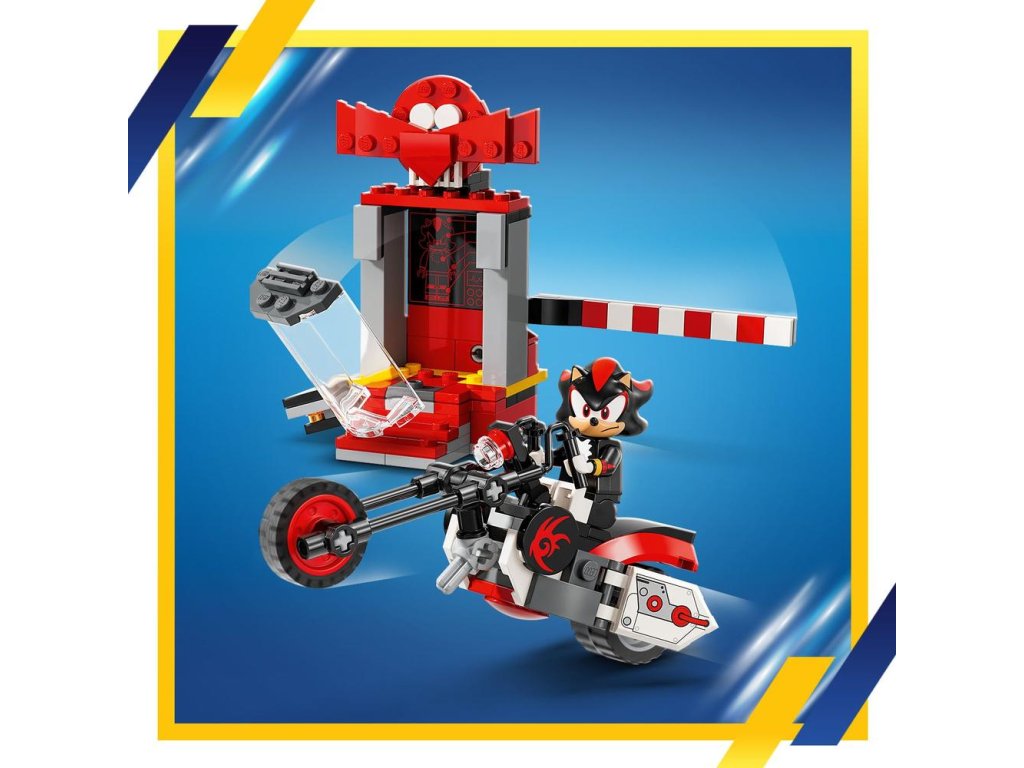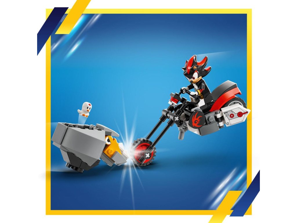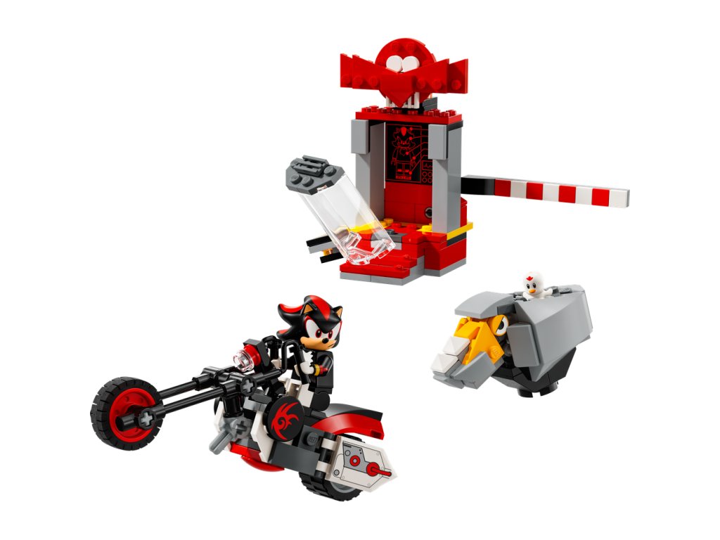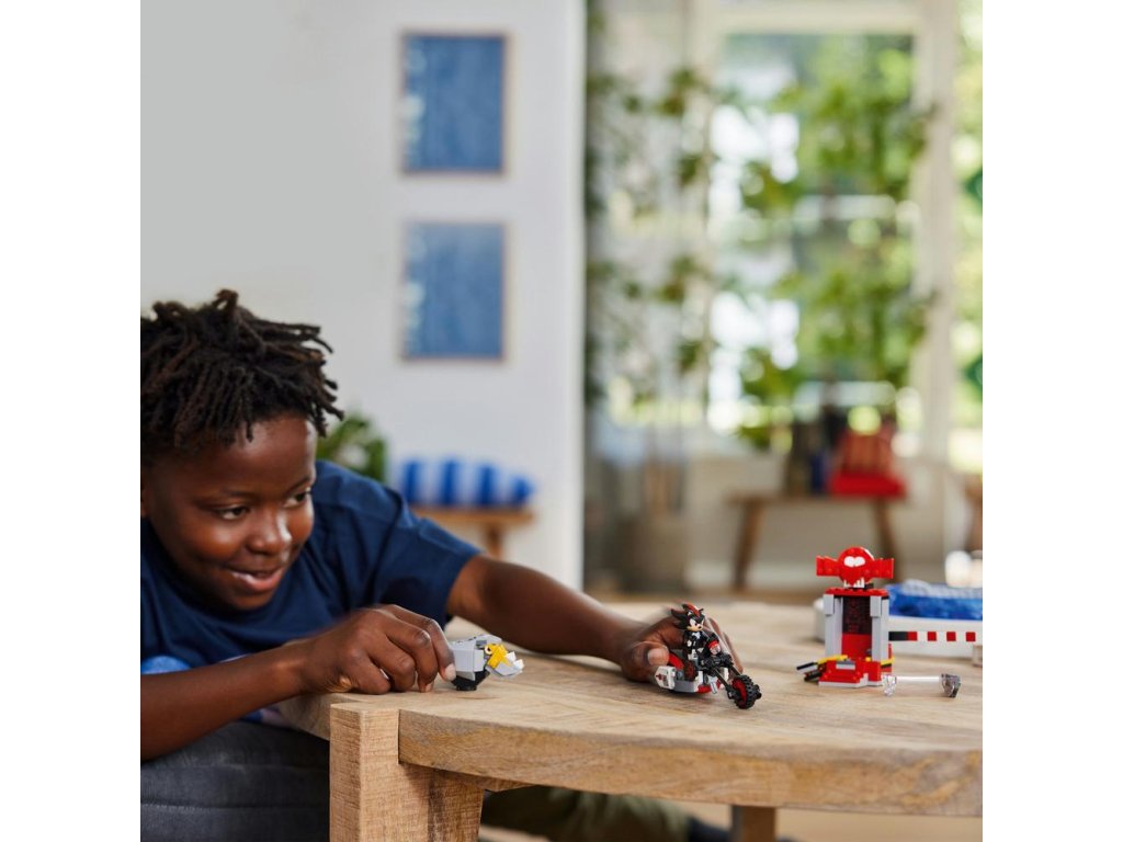 Neskôr sa zabavia pri oslobodzovaní Shadowa zo stázovej komory laboratória a pri pretekoch na jeho motorke okolo padajúcej barikády, než zničia Badnika, RhinoBota (ktorý vypustí Cluckyho) a utečú. Stavebnica je plná herných možností, ktoré podnietia rozprávanie príbehov. Deti môžu vymýšľať zábavné spôsoby, ako sa Shadow vzoprie RhinoBotovi predtým, než unikne na motorke. Rýchla akčná zábava v kombinácii s kreatívnymi spôsobmi hry: také sú hračky zo série LEGO Sonic the Hedgehog™. Chlapci, dievčatá a fanúšikovia Modrej škvrny si zamilujú tvorbu inšpiratívnych scén s 3 obľúbenými akčnými figúrkami Sonica. Deti si tiež môžu užiť jednoduché a intuitívne staviteľské dobrodružstvo s aplikáciou LEGO Builder, v ktorej si môžu približovať a otáčať svoje modely v 3D rozhraní, ukladať stavebnice a sledovať svoj pokrok.