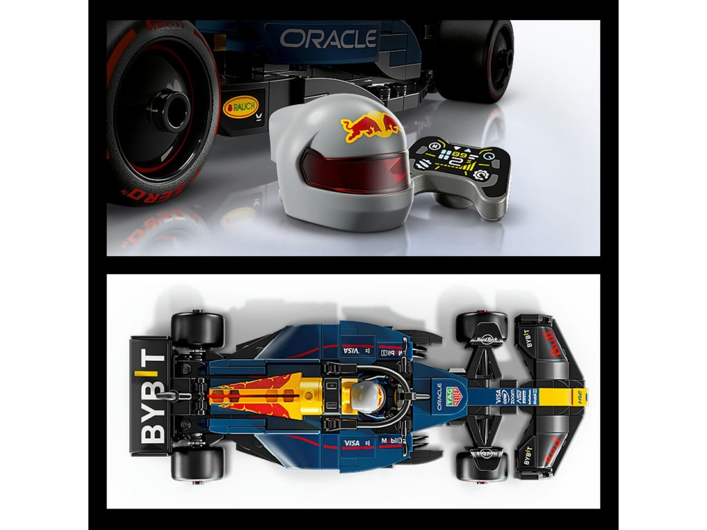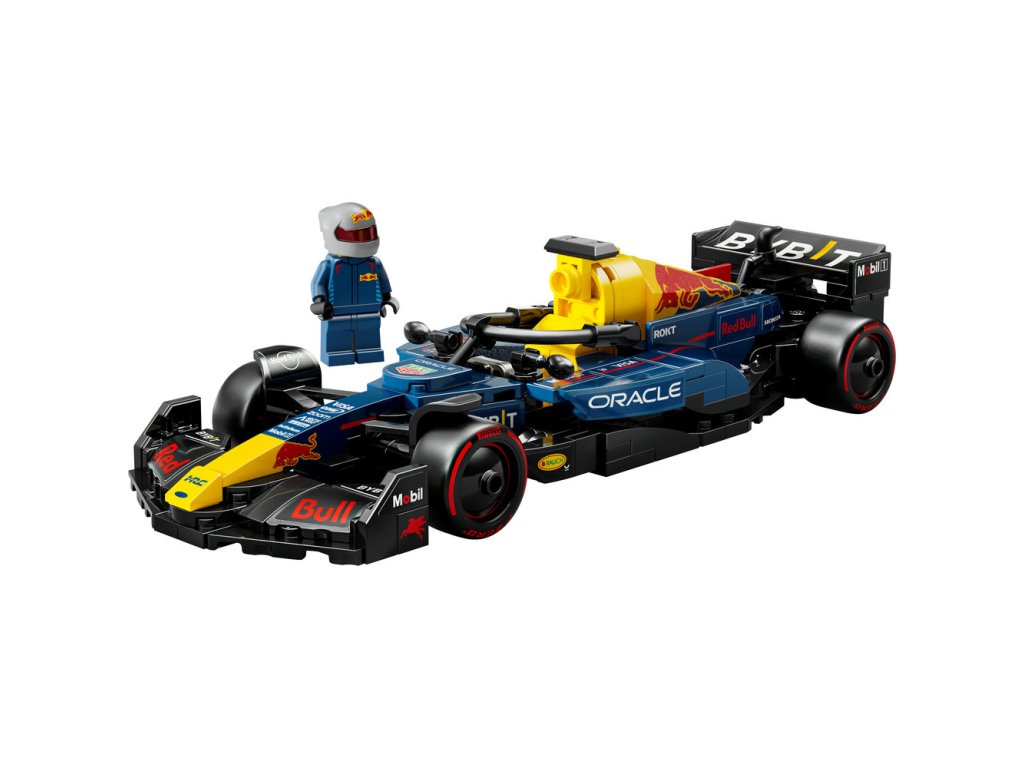- Minifigúrka F1® – Model vozidla obsahuje minifigúrku šoféra F1 v oblečení Red Bull a okrídlenej prilbe, ktorého môžete umiestniť do kokpitu auta F1