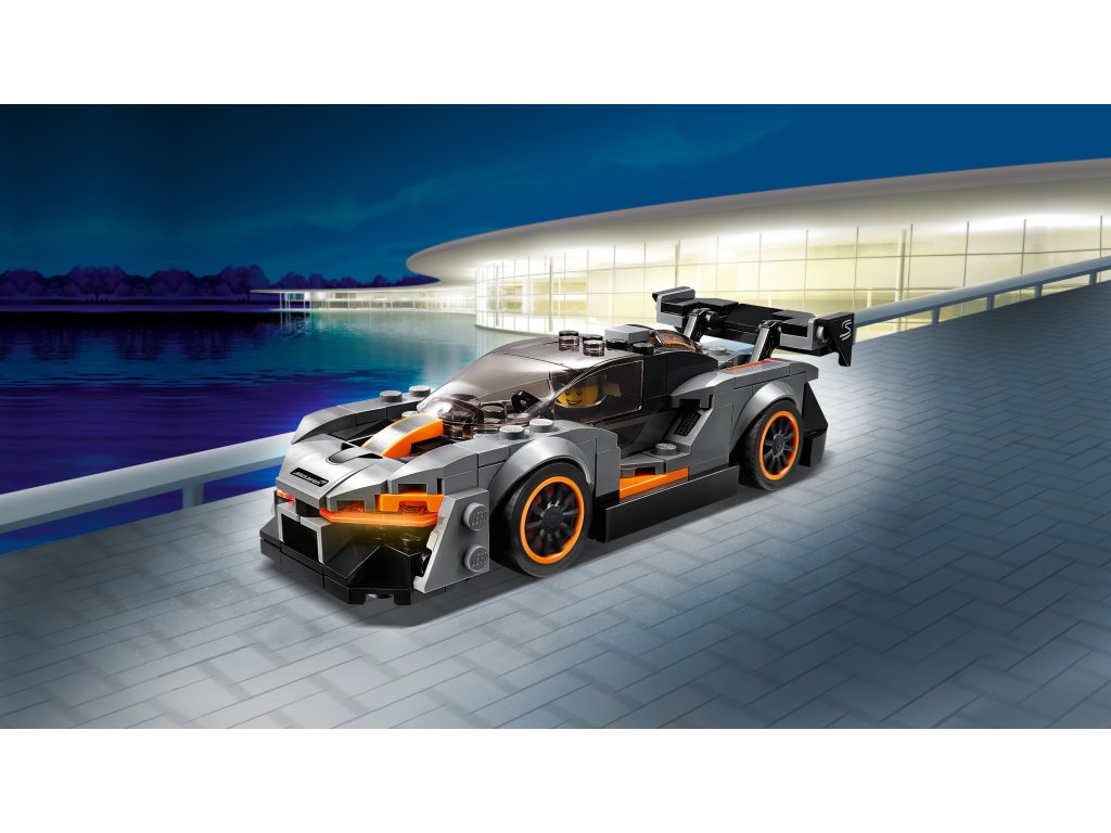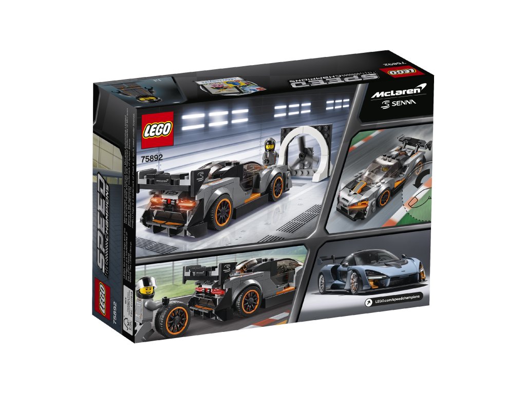 - Zostaviteľné pretekárske auto McLaren Senna obsahuje kokpit pre minifigúrku, odnímateľné čelné sklo, kolesá s gumenými pneumatikami a vymeniteľné ráfiky, zadný spojler, priesvitné dieliky v tvare sveta, nálepky s logom McLaren a Senna a autentické konštrukčné detaily.