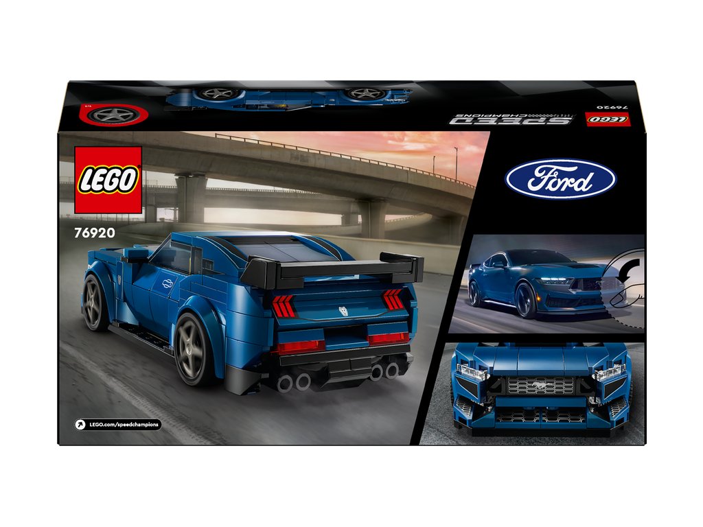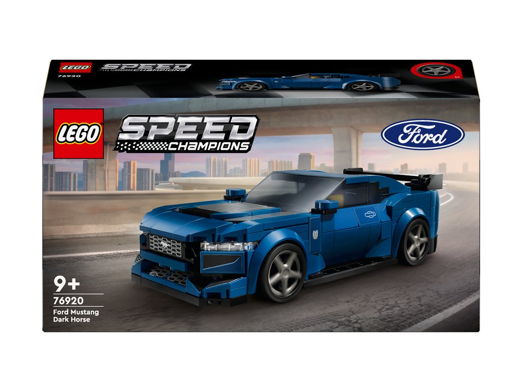 Hračkársky Športiak Ford Mustang Dark Horse (76920) zo série LEGO® Speed Champions je autentická verzia skutočného auta od ikonického amerického výrobcu áut z kociek LEGO. Deti od 9 rokov si užijú zbieranie, stavanie, vystavovanie a hru na akčné preteky s týmto modrým hračkárskym autom.