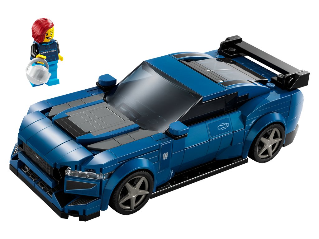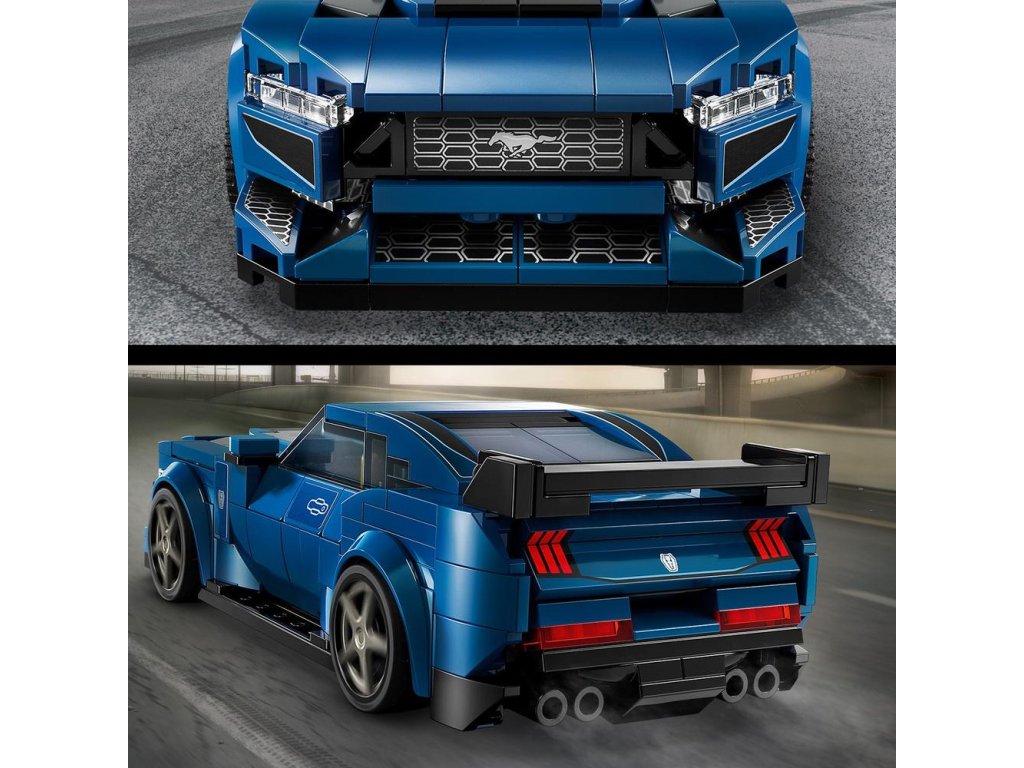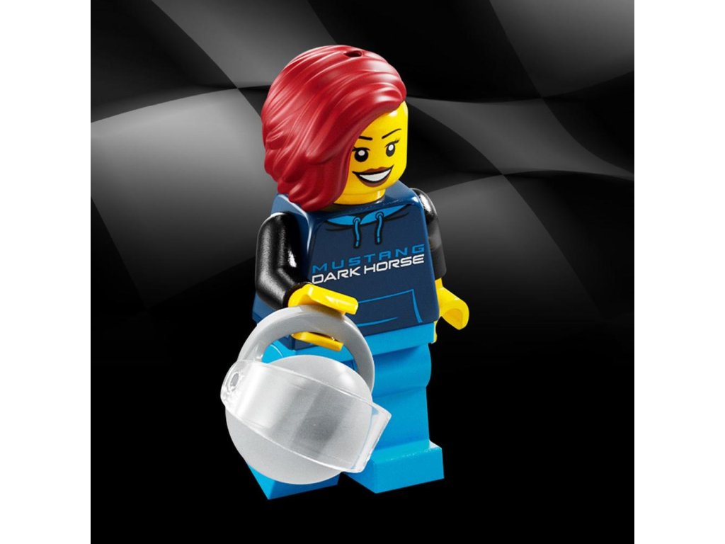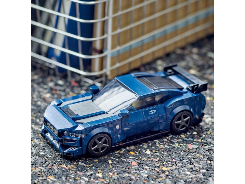 Dizajn hračkárskeho auta Ford Mustang má niekoľko autentických prvkov: zadné krídlo, výraznú mriežku chladiča, svetlomety, výfukové potrubie, logá Ford a prepracovaný interiér s radiacou pákou a palubnou doskou. Zostaviteľného auta LEGO je aj odnímateľná strecha a minifigúrka vodiča v mikine Dark Horse, ktorú môžu deti umiestniť do volantu a napínavej jazdy.