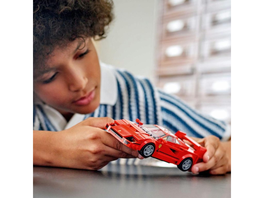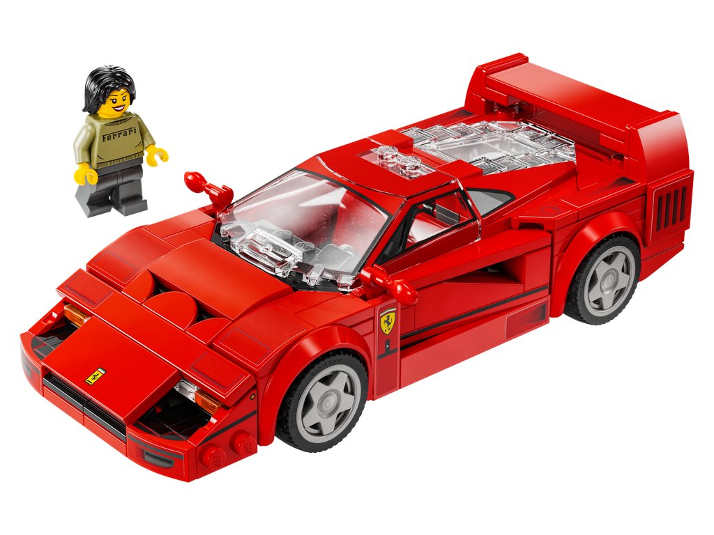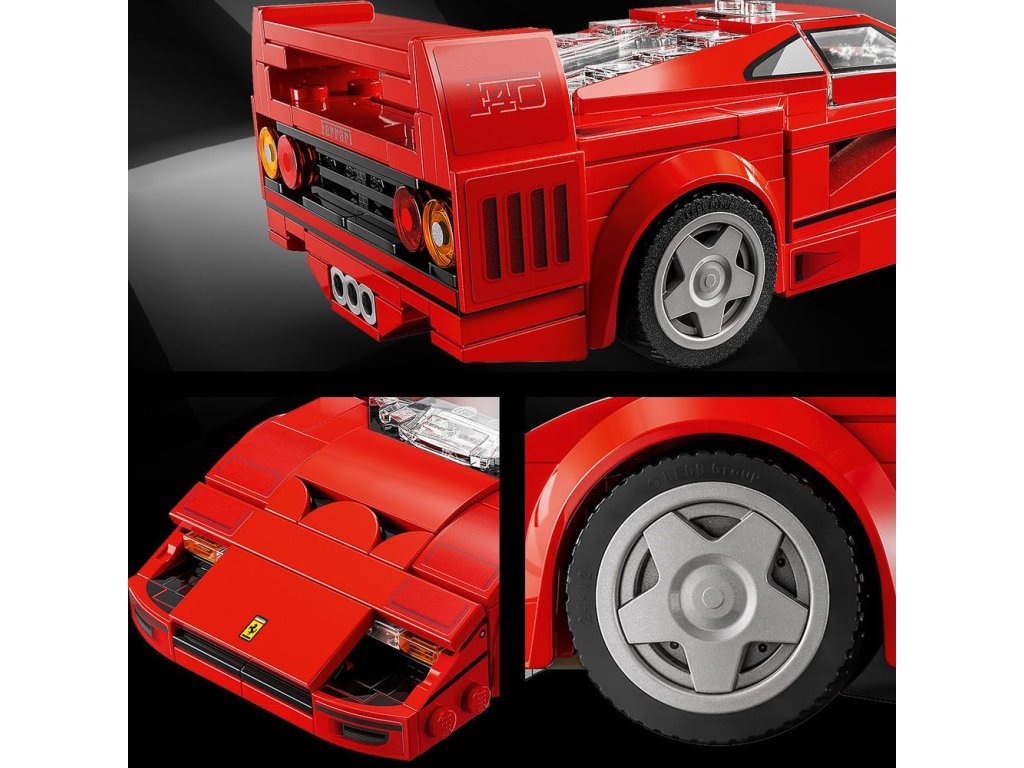 Hračkárske Ferrari F40 má ikonický zadný spojler, prednú časť kapoty, výfuky, ráfiky, prvky nasávania vzduchu a interiér s palubnou doskou, ručnou brzdou, riadiacou pákou, červenými sedadlami a volantom. Súčasťou superauta LEGO je aj minifigúrka vodiča Ferrari, ktorú deti môžu posadiť za volant.