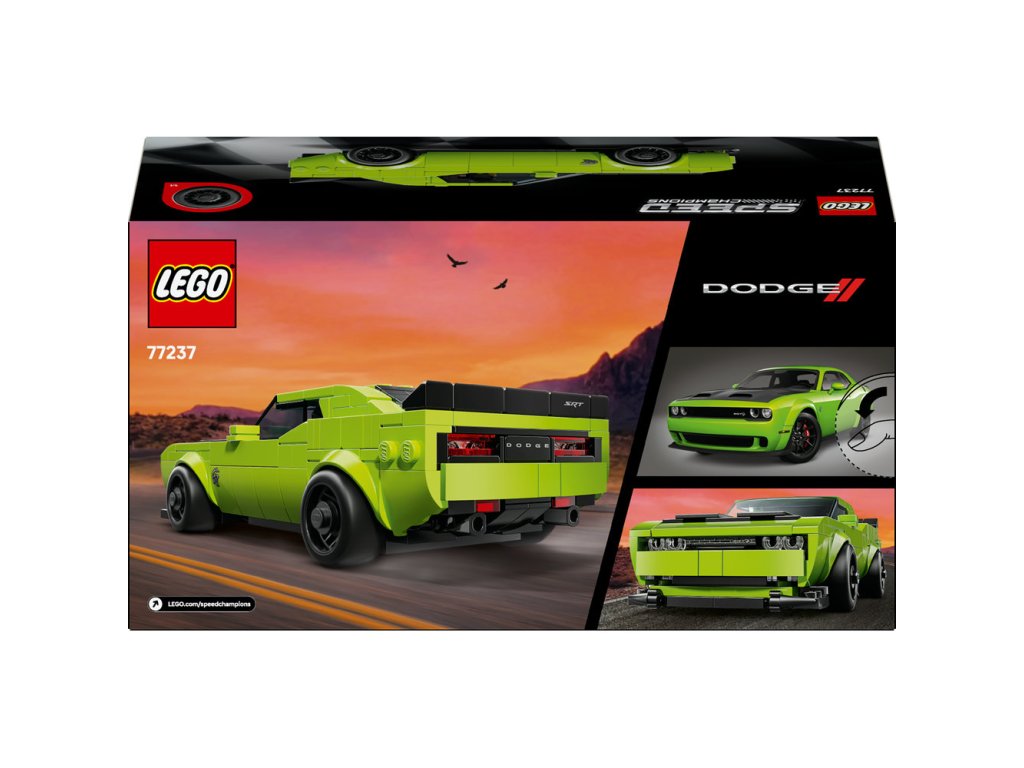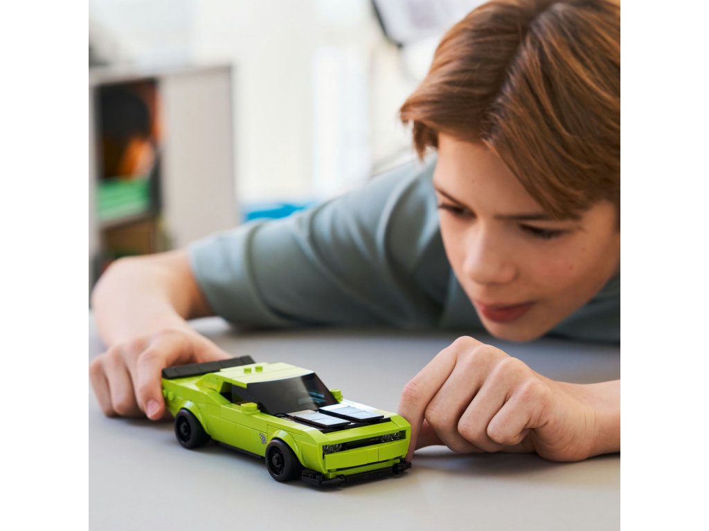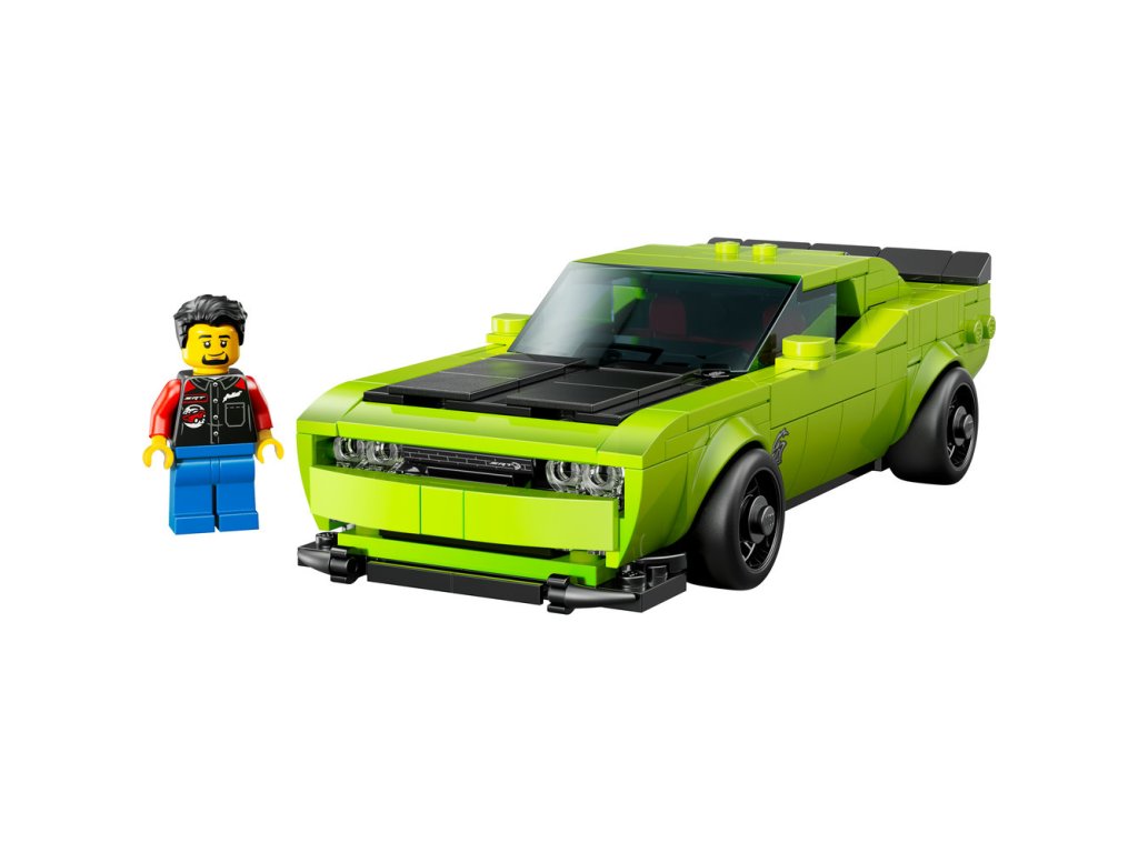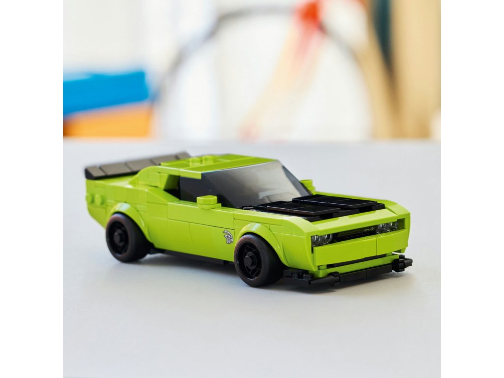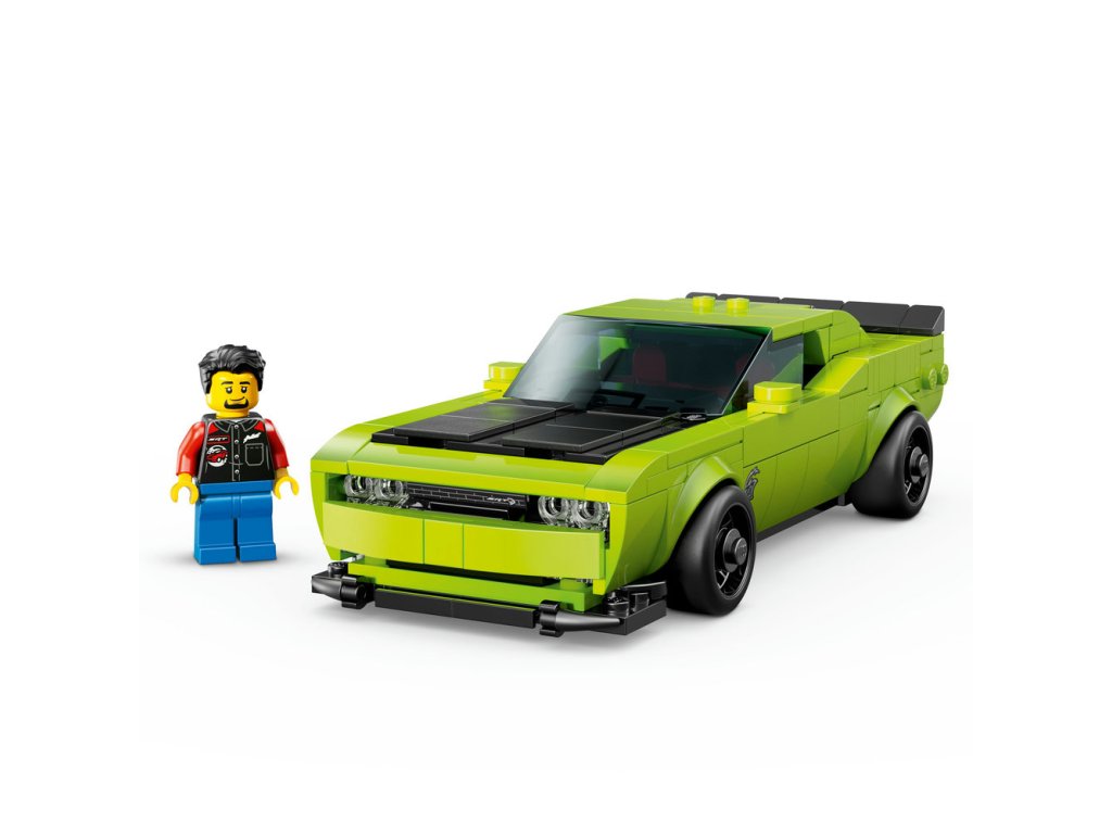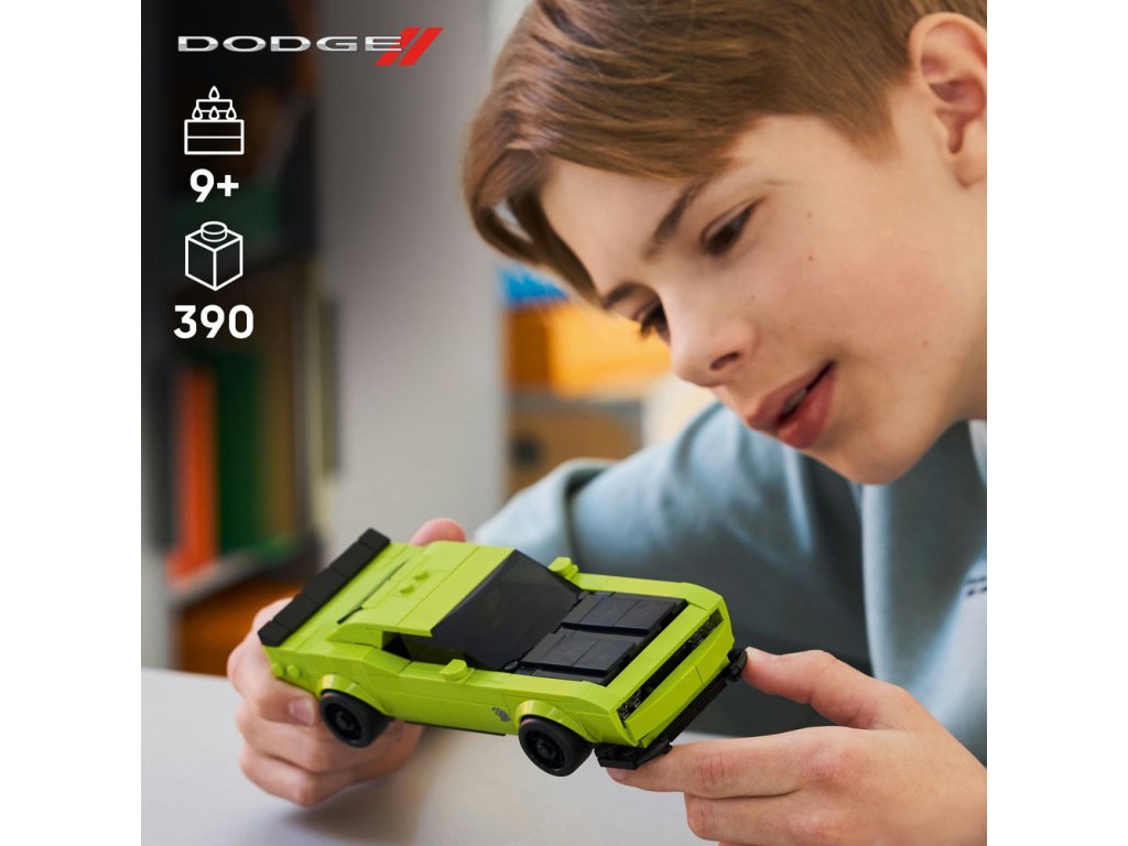 Toto dvojdverové kupé je vôbec prvé moderné auto Dodge, ktoré sa objavilo v sérii LEGO Speed Champions. Auto má dlhú kapotu, vydutý otvor v kapote, výraznú prednú mriežku chladiča a dvojité koncovky výfuku. Zberateľský model auta sa dodáva aj s minifigúrku vodiča, takže deti a fanúšikovia športiakov si môžu zinscenovať preteky na trati alebo na ceste.