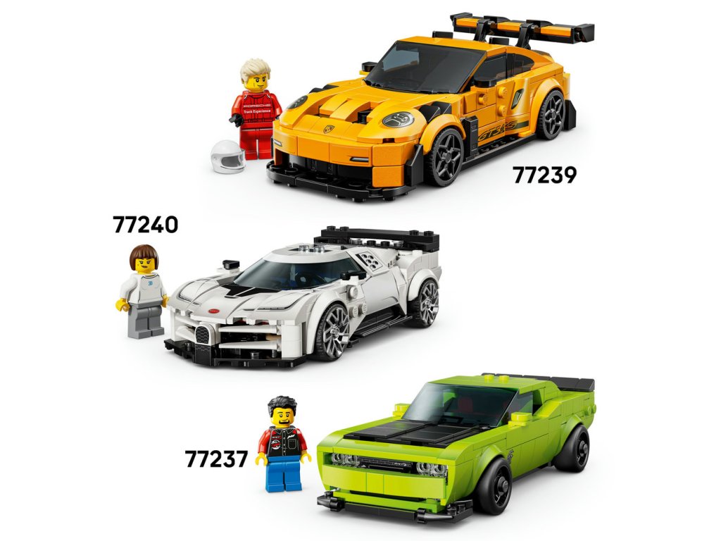 Revuelto s motorom V12 je najvýkonnejším modelom tejto talianskej automobilky všetkých čias a Huracán STO je ideálny na cesty aj trate. Obe hračkárske autá sú plné autentických prvkov skutočných áut Lamborghini, vrátane prieduchov, krídel a futuristických svetlometov v tvare písmena Y a zadných svetiel. Obe autíčka obsahujú minifigúrku vodiča, ktorú deti môžu posadiť za volant a zahrať sa na preteky.