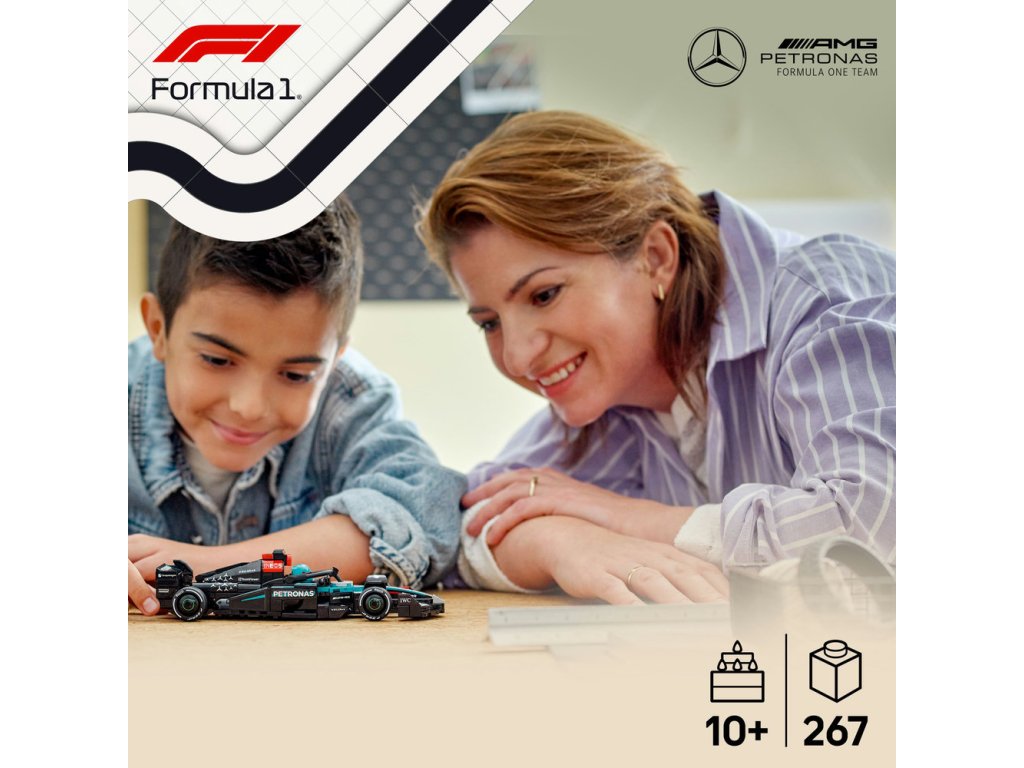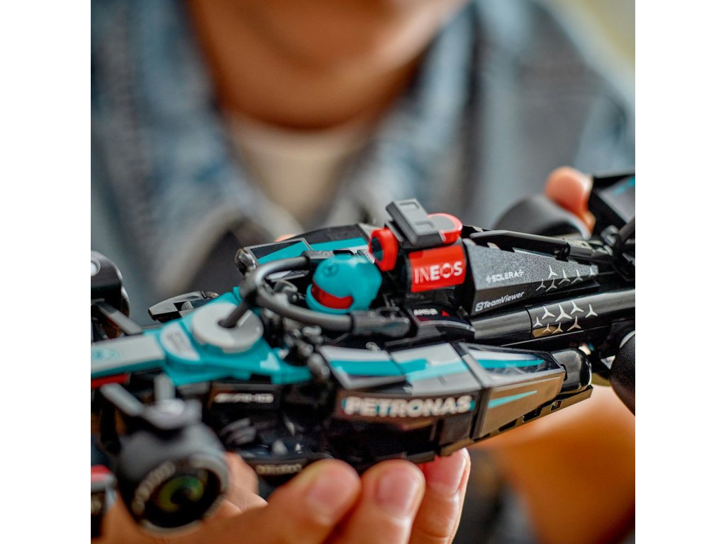 - 1 minifigúrka vodiča – Tento model auta obsahuje minifigúrku vodiča v špeciálnom outfite Mercedes-AMG PETRONAS F1® Team a okrídlenej prilbe a deti ho môžu umiestniť do kokpitu a zinscenovať si akčné preteky