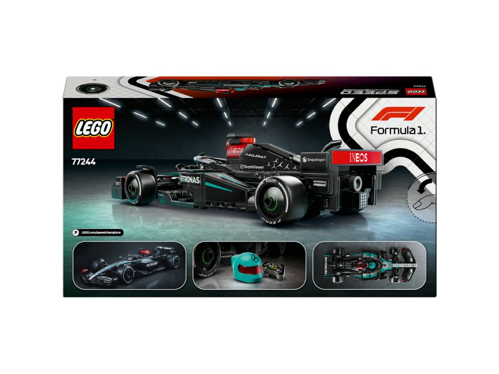 Chlapci a dievčatá od 10 rokov môžu zbierať, stavať, vystavovať a pretekať s týmto úžasným pretekárskym autom LEGO® Speed Champions Mercedes-AMG PETRONAS F1® Team (77244). Elegantné pretekárske auto Mercedes-AMG F1 pre deti a fanúšikov Mercedes-AMG PETRONAS F1 Team obsahuje dizajnové prvky podľa skutočného auta, ktoré súťažilo na majstrovstvách sveta Formuly 1® v roku 2024. Tento model auta F1 má kokpit, ktorý otvoríte zdvihnutím bezpečnostnej tyče halo, zadné krídlo, priečne trojuholníkové rameno na zavesenie kolies, nálepky sponzorov a široké zadné pneumatiky s nápisom „Pirelli“. Tento zostaviteľný model obsahuje aj minifigúrku šoféra v uniforme Mercedes-AMG PETRONAS F1 Team a okrídlenej prilbe, ktorého môžete umiestniť do kokpitu a zinscenovať si preteky. So stavebnicami LEGO Speed Champions si deti a fanúšikovia pretekov môžu postaviť modely najikonickejších áut na svete vrátane ďalších modelov F1.