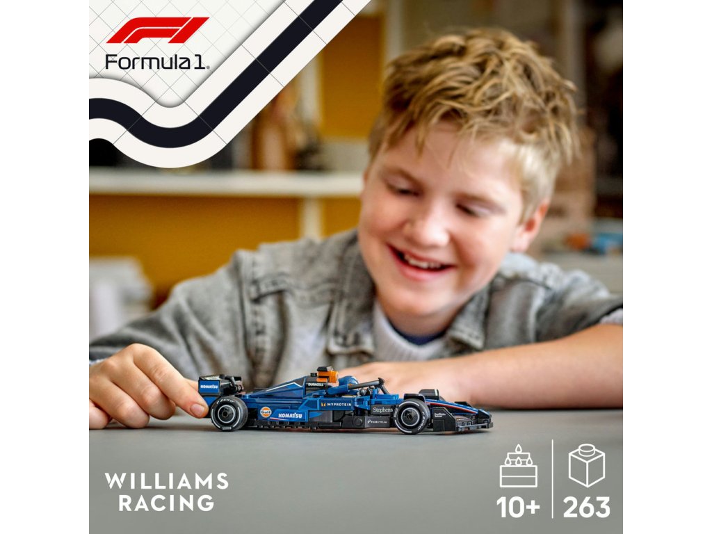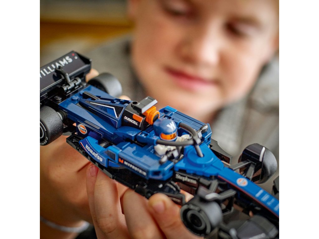 Deti aj dospelí zberatelia áut si môžu postaviť, vystaviť a zinscenovať preteky s týmto pretekárskym autom F1, ktoré má dizajnové prvky presne podľa skutočného auta, ktoré súťažilo vo Formule 1 v roku 2024. Tento model auta F1 má kokpit, ktorý otvoríte zdvihnutím bezpečnostnej tyče halo, zadné krídlo, priečne trojuholníkové rameno na zavesenie kolies, nálepky sponzorov a široké zadné pneumatiky s nápisom „Pirelli“. Zostaviteľné hračkárske auto F1 obsahuje aj minifigúrku šoféra v uniforme Williams Racing a okrídlenej prilbe, ktorého môžete umiestniť do kokpitu. So stavebnicami LEGO Speed Champions si deti a fanúšikovia pretekov môžu postaviť modely niektorých z najikonickejších áut na svete vrátane ďalších modelov F1 (predávané samostatne) z majstrovskej sezóny 2024. Každý model auta možno postaviť pomocou priloženého návoduna stavanie, alebo aplikácie LEGO Builder.