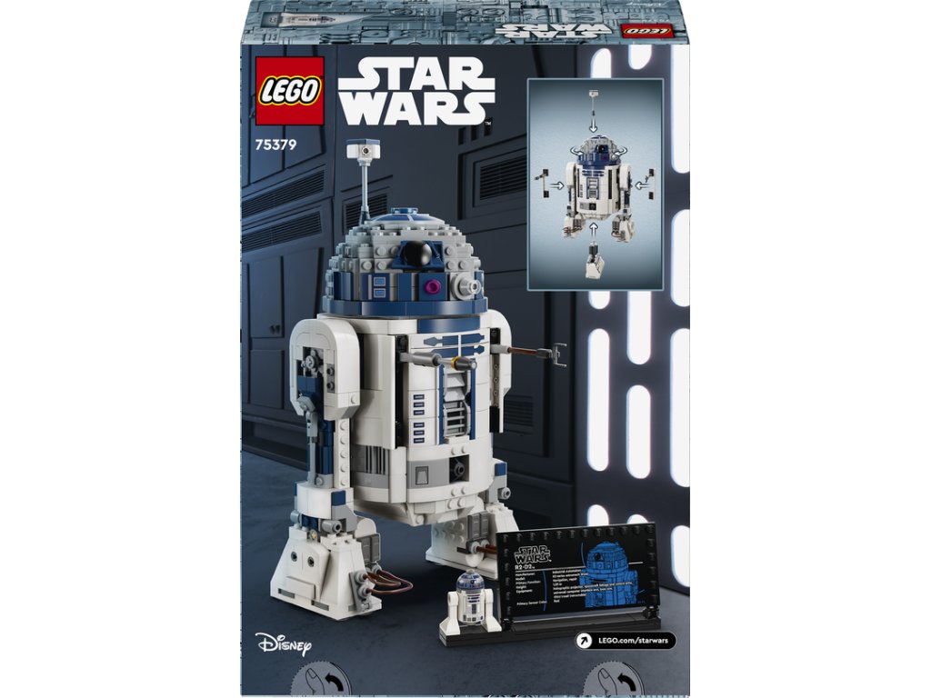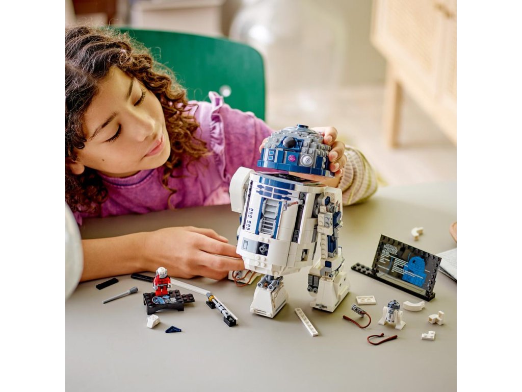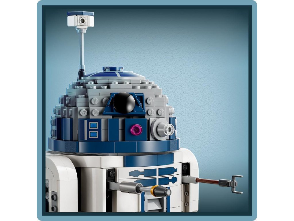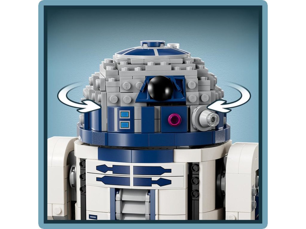 Tento hravý zostaviteľný výstavný model pre chlapcov a dievčatá od 10 rokov je vybavený autentickými funkciami, takže deti si môžu zinscenovať legendárne momenty aj svoje vlastné fantastické príbehy. Medzi funkcie R2-D2 patrí rotujúca hlava o 360 stupňov, tretia pripojiteľná noha, pripojiteľný periskop a pripojiteľné nástroje.