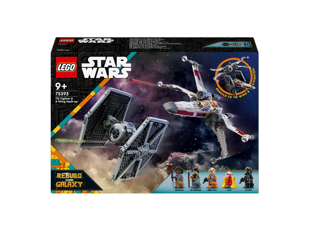 Postavte si kombinácie hviezdnych stíhačiek zo špeciálu LEGO® Star Wars™: Rebuild the Galaxy od Disney+ s modelom Stíhačka TIE & X-wing – kombinovaná stavebnica (75393) pre deti. Táto štýlový darček LEGO pre chlapcov, dievčatá a všetkých fanúšikov Star Wars obsahuje stíhačky „TIE-wing“ a „X-fighter“, obe s otváracím kokpitom pre minifigúrku LEGO a 2 pružinové vystreľovače. Stačí odstrániť uzamykacie dieliky, odpojiť krídla od trupu oboch zostaviteľných stíhačiek a prestavajte ich na ikonickú stíhačku TIE a X-wing. Nastaviteľné krídla stíhačky „TIE-wing“/X-fighter sú výborné na režim letu aj režim útoku a po prestavbe na X-wing môžete využiť jej zasúvací podvozok.