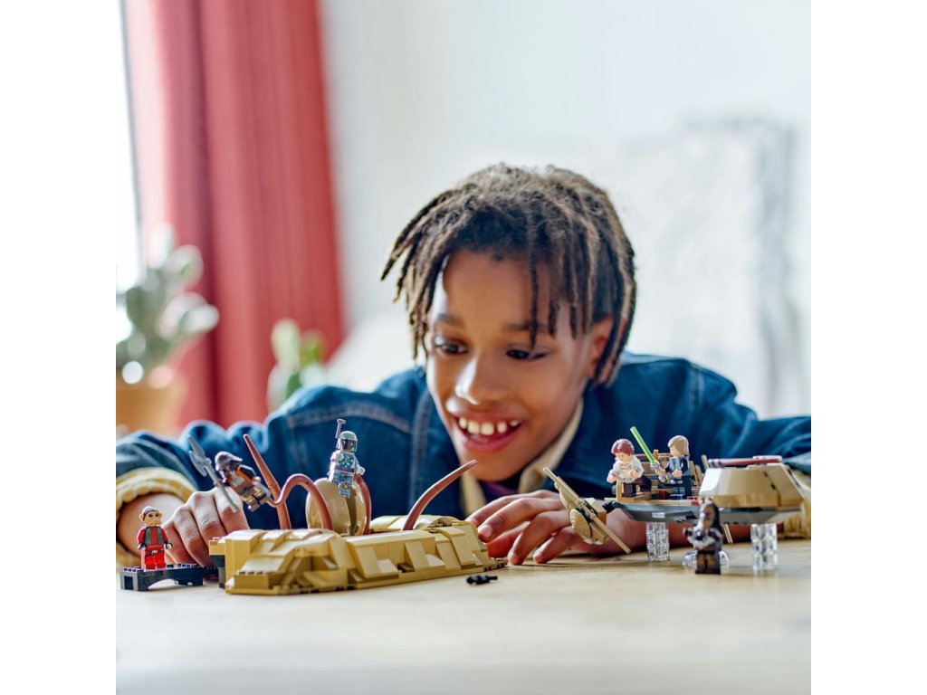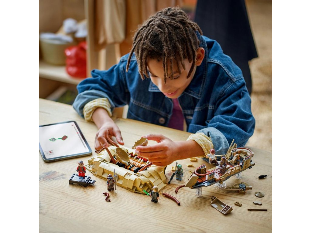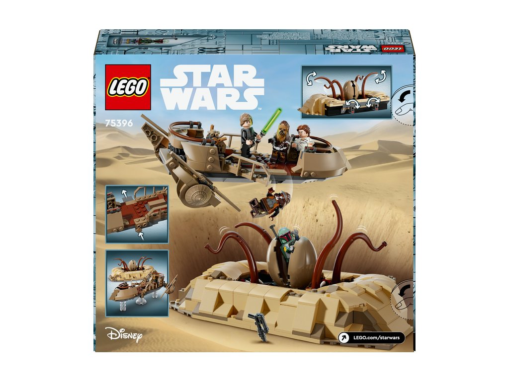 Pripomeňte si napínavú scénu z filmuStar Wars: Návrat Jediho a postavte si nové dobrodružstvá s touto stavebnicou Púštny skif a Sarlaccova jama (75396) z LEGO® kociek pre deti od 9 rokov. Púštny skif má priesvitné prvky, ktore vytvárajú efekt vznášania a hravé detaily, ako je napríklad vysúvacia doska, po ktorej môže kráčať Luke Skywalker, a rozkladacie zábradlie, z ktorého Han Solo takmer spadol. V jame sú páky, ktorými sa hýbu Sarlaccové chápadlá a Sarlacc má v ústach priestor pre minifigúrku LEGO.