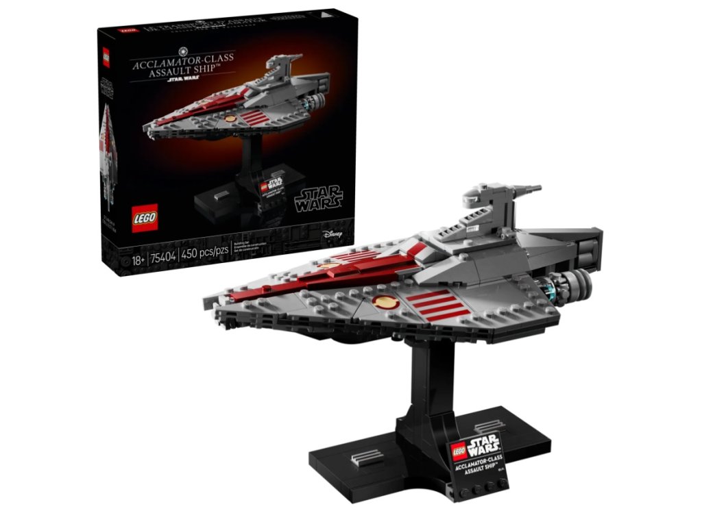- Postavte a vystavte si model vesmírnej lode – Pripomeňte si dramatické scény z Bitky o Geonosis popri stavaní stredne veľkej stavebnice LEGO® Star Wars™ Útočná loď triedy Acclamator