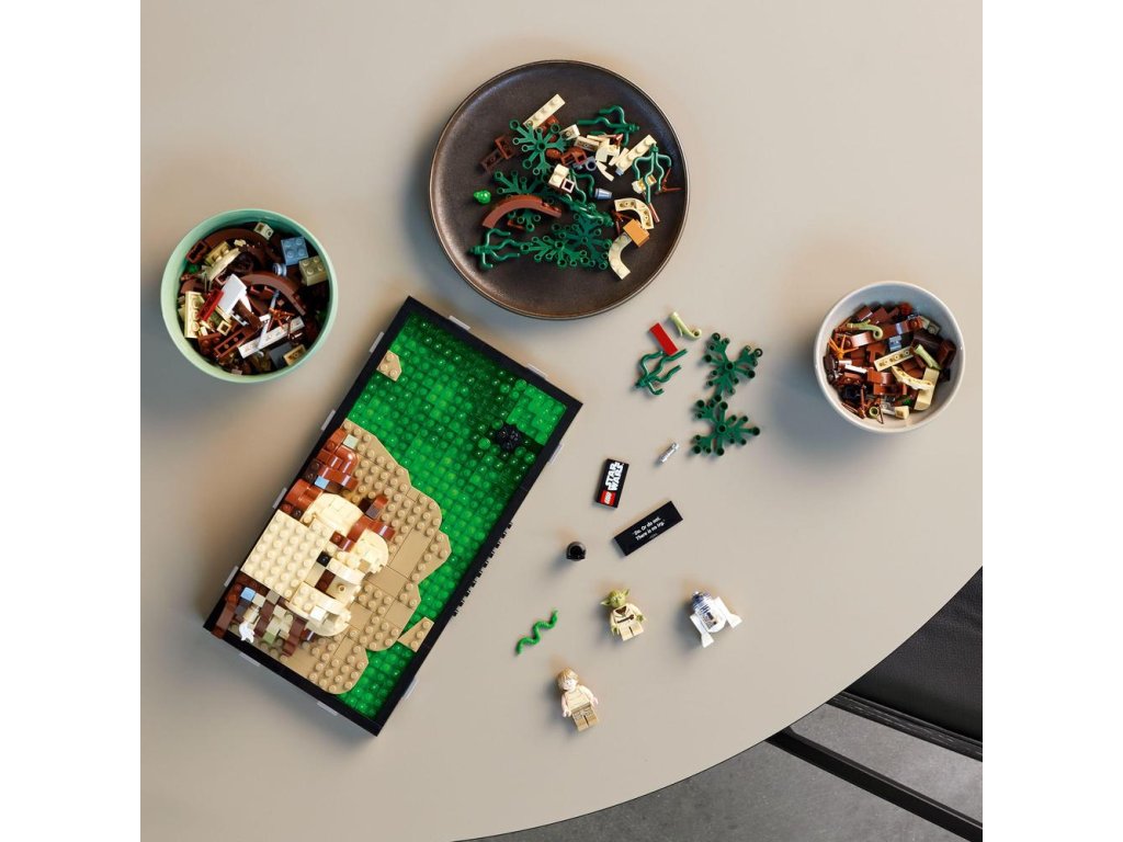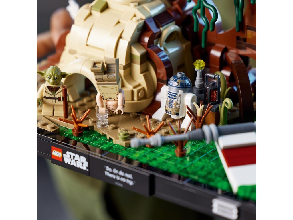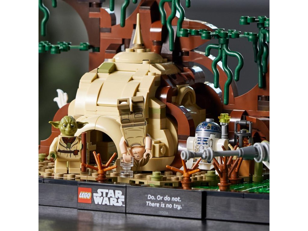 - Ako stvorená na vystavenie – postavte Yodovu chatrč na planéte Dagobah a krídlo stíhačky X-wing Lukea Skywalkera v močiari. Celý model dotvorte tabuľkou s výrokom Yodu: „Do. Alebo nie. Neexistuje žiadny pokus."