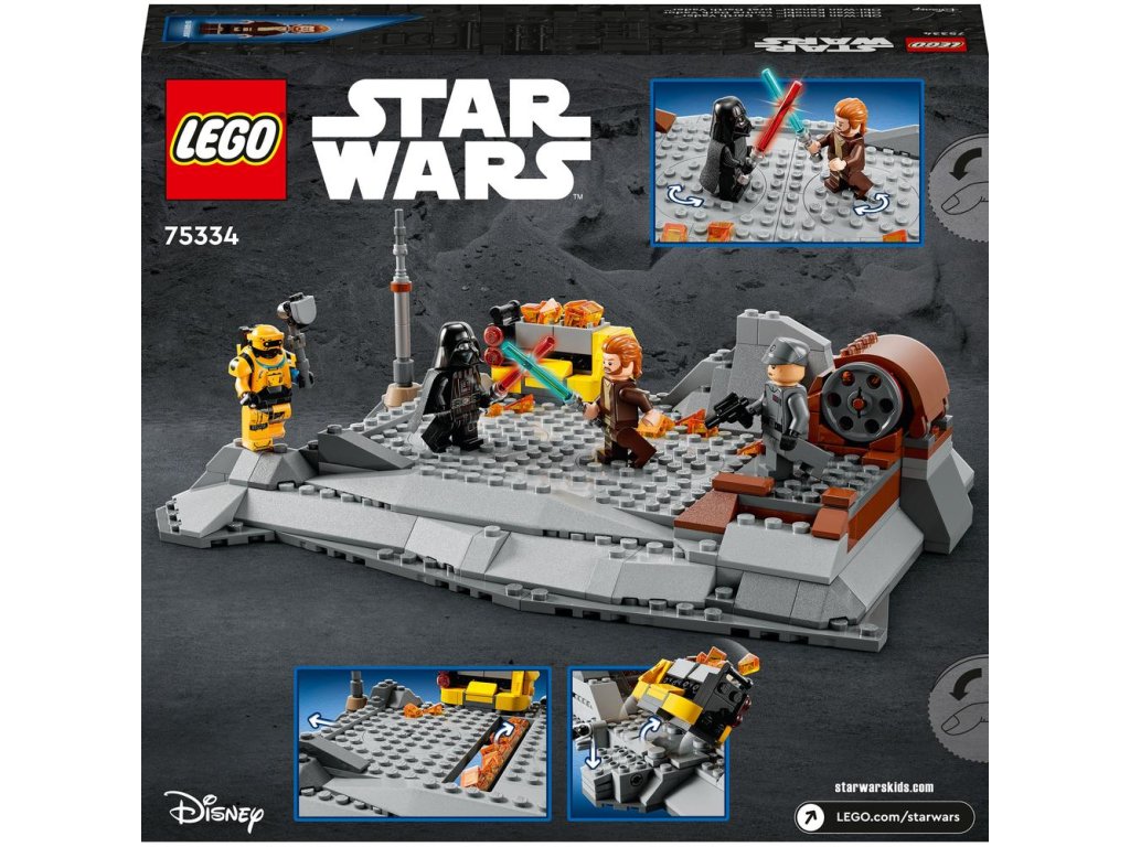 S touto stavebnicou LEGO® Star Wars™ (75334) si môžete pripomenúť neľútostný súboj medzi Obi-Wanom Kenobim a Darth Vaderom. Nechýba ani bojisko s 2 otočnými bojovými plošinami, funkcia vysúvacieho ohňa na rozdelenie bojiska a banský vozík, ktorý môžete prevrátiť. Súčasťou sú aj 4 minifigúrky LEGO – Obi-Wan a Darth Vader (obaja so svetelnými mečmi), Tala Durith a droid NED-B na zohrávanie scén zo seriálu Star Wars: Obi-Wan Kenobi. Jedinečný darček zo sveta Star Wars pre deti od 8 rokov Uvažujete o tom, že tento set darujete fanúšikovi Star Wars, ktorý je nováčikom vo svete stavebníc LEGO? Žiadny problém – pomôže mu totiž podrobný obrázkový návod. Neobmedzená tvorivá zábava LEGO Group vytvára stavebnice ikonických vesmírnych lodí, vozidiel, miest a postáv zo sveta Star Wars už od roku 1999. LEGO Star Wars je našou najúspešnejšou sériou a v našej širokej ponuke nájdete kopu úžasných modelov, ktoré zaru