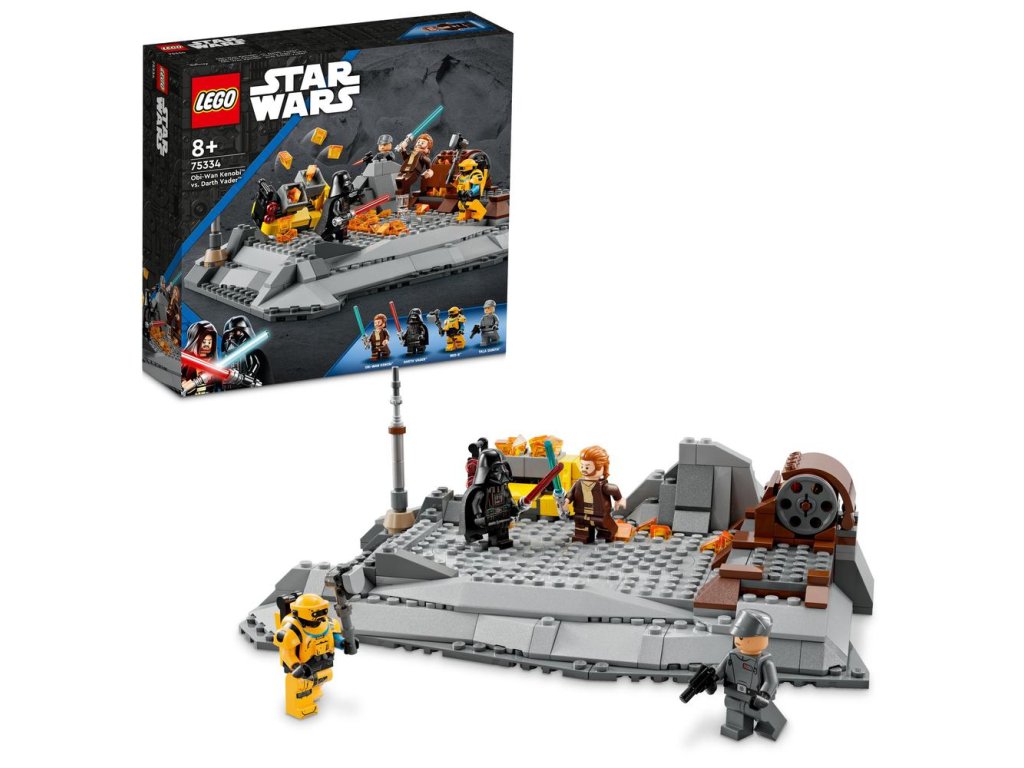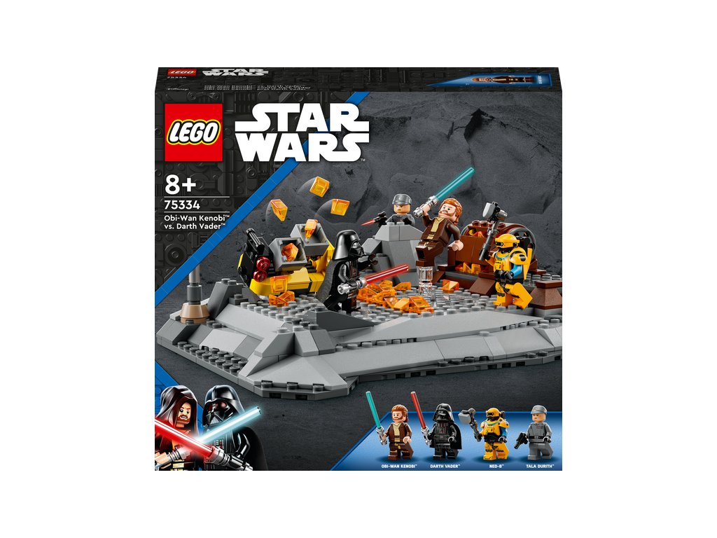 - Bojová stavebnica Obi-Wan Kenobi vs. Darth Vader (75334) – S týmto akčným setom LEGO® Star Wars ™ pre deti môžete využiť veľkolepý súboj so svetelnými mečmi podľa seriálu Star Wars : Obi-Wan Kenobi