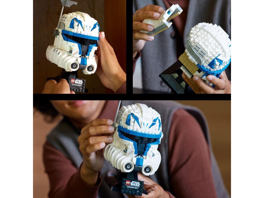 - Ako stvorené na vystavenie – Prežite znova dramatické scény zo seriálu Star Wars : Klonové vojny pri pretváraní autentických detailov helmy kapitána Rexa z kociek LEGO®. Potom si ju vystavte na podstavci z kociek spolu s cedulkou