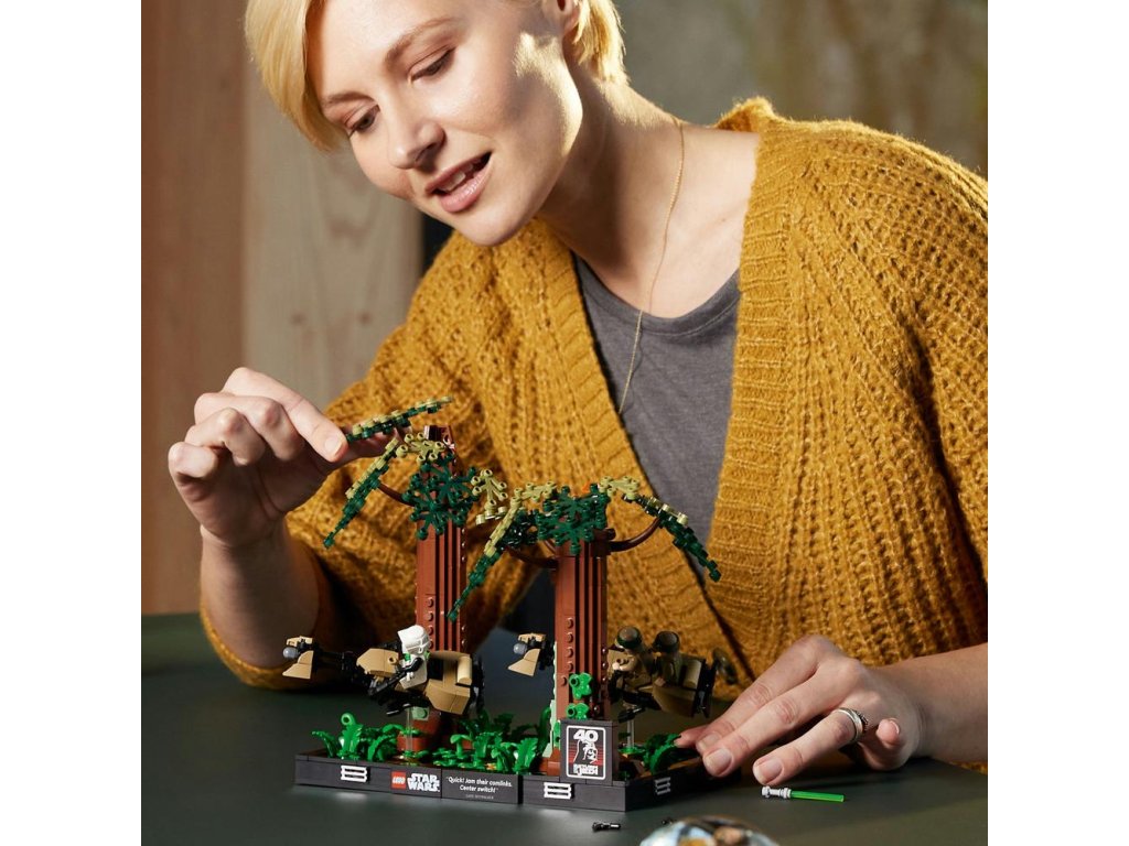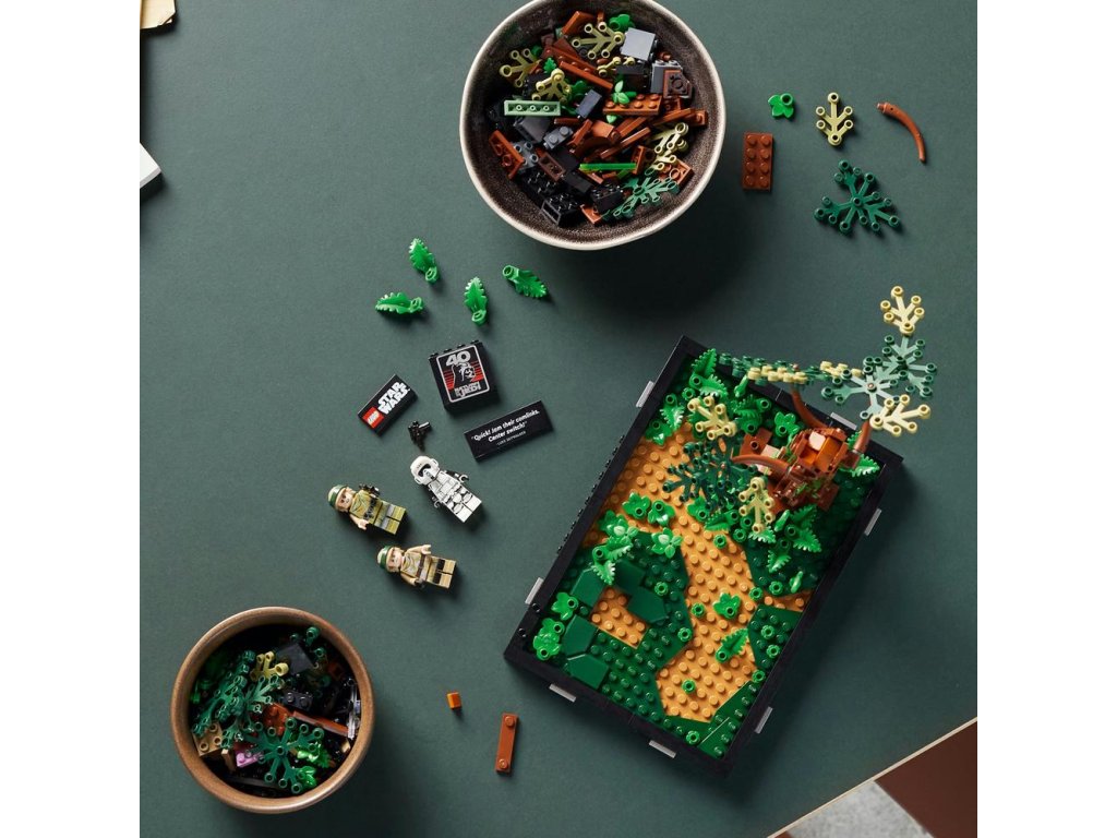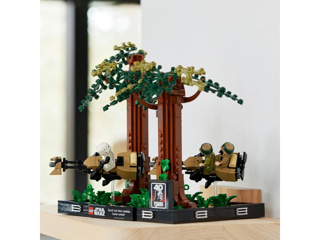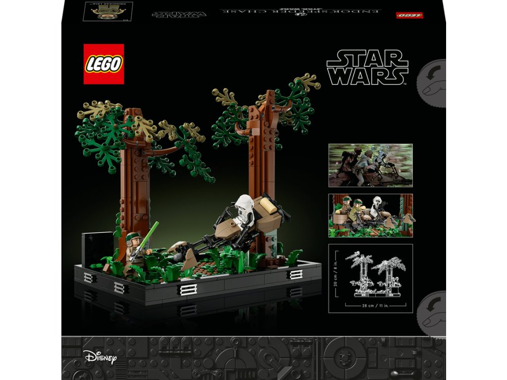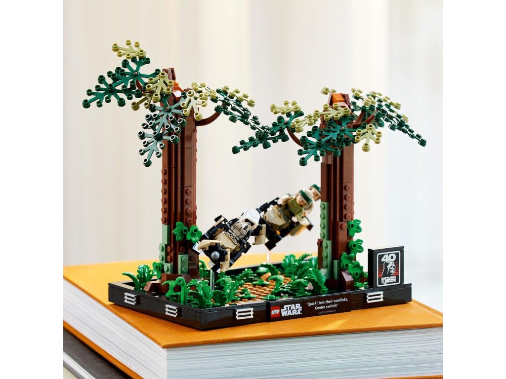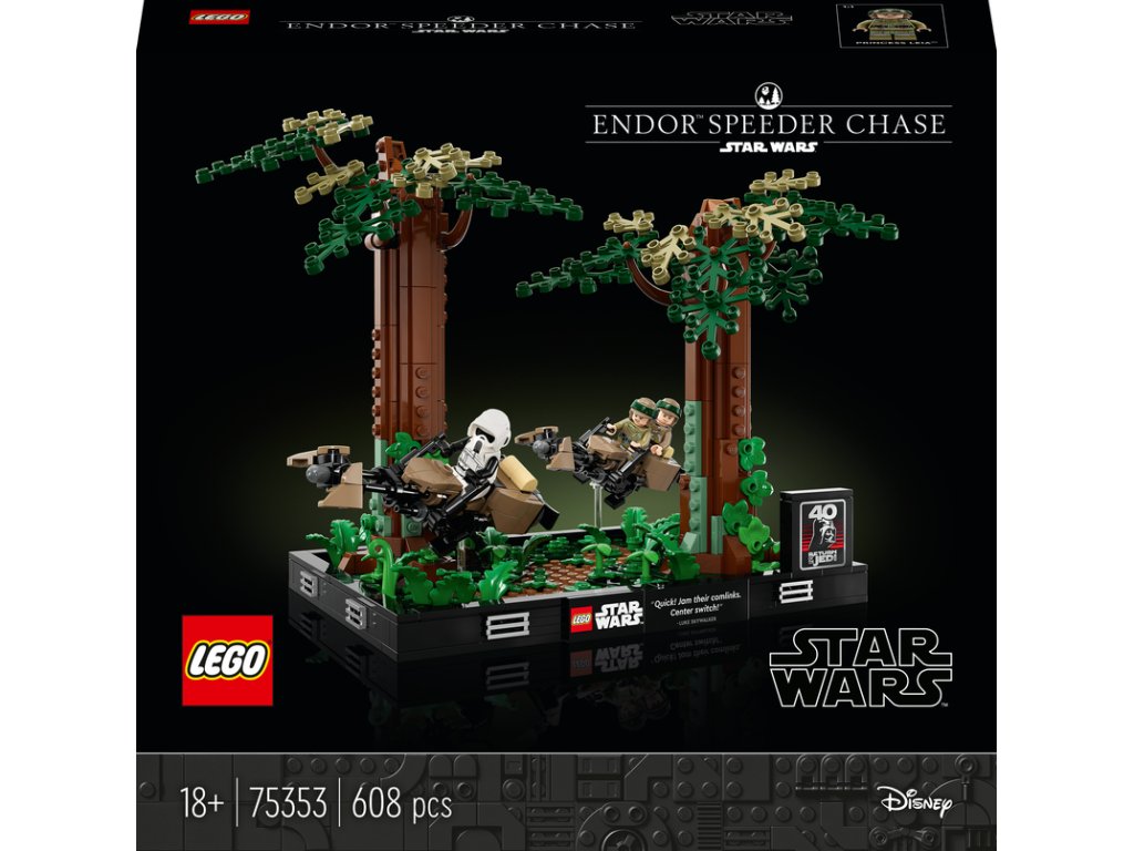 - Prevedená dioráma Naháňačka na planéte Endor™ (75353) – Je to 7 kocky LEGO® a postavte si napínavú scénu kultovej naháňačky spídrov v lesoch Endoru z filmu Star Wars : Návratdiho