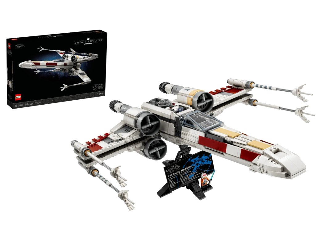 Stíhačka X-wing meria vyše 55 cm na dĺžku a dodáva sa so zostaviteľným výstavným podstavcom s ceduľkou, na ktorej sú uvedené technické detaily stíhačky. Nechýba tam ani miesto pre minifigúrku Luka Skywalkera so svetelným mečom, ktorú uvedieme v máji 2023.