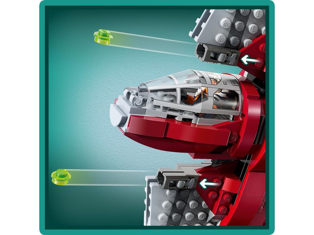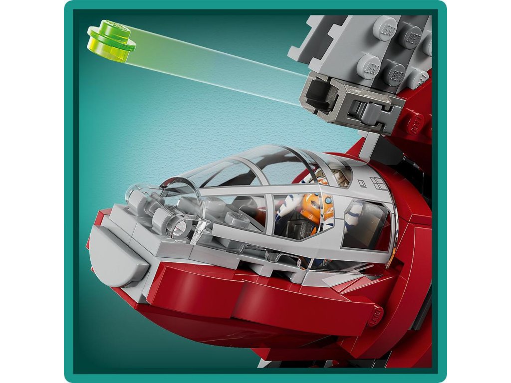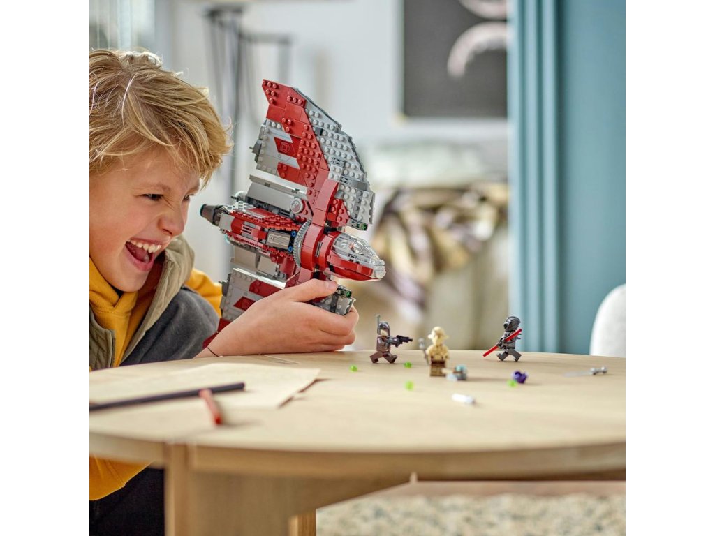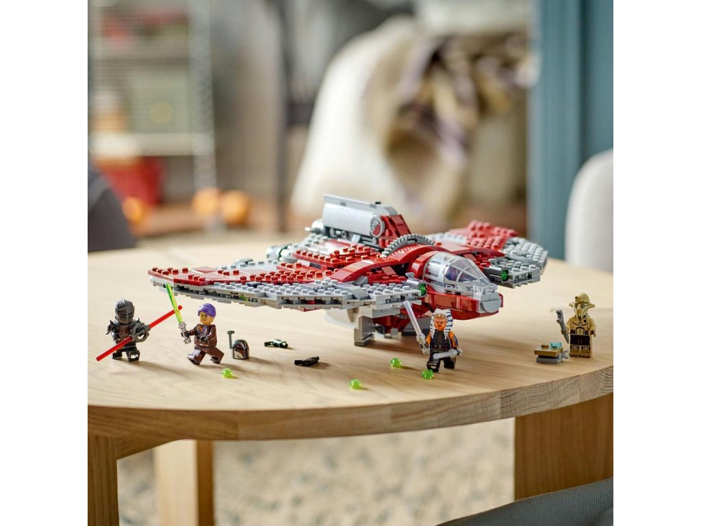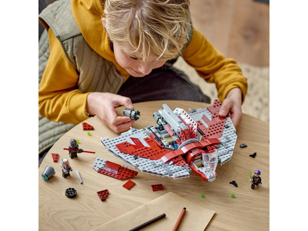 - Jediský raketoplán T-6 Ahsoky Tano (75362) na akčnú hru – Deti si môžu zinscenovať vlastné príbehy zo seriálu Star Wars : Ahsoka s touto prepracovanou verziou raketoplánu Ahsoky Tano z kociek LEGO®