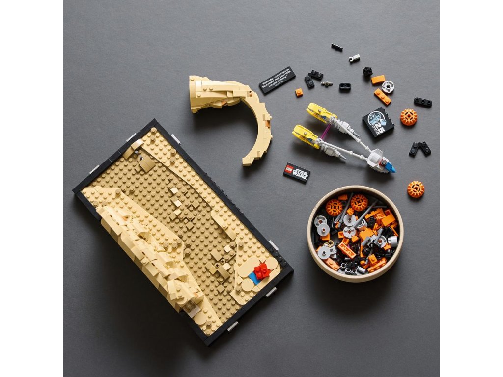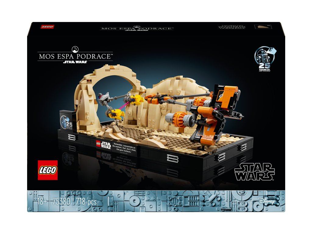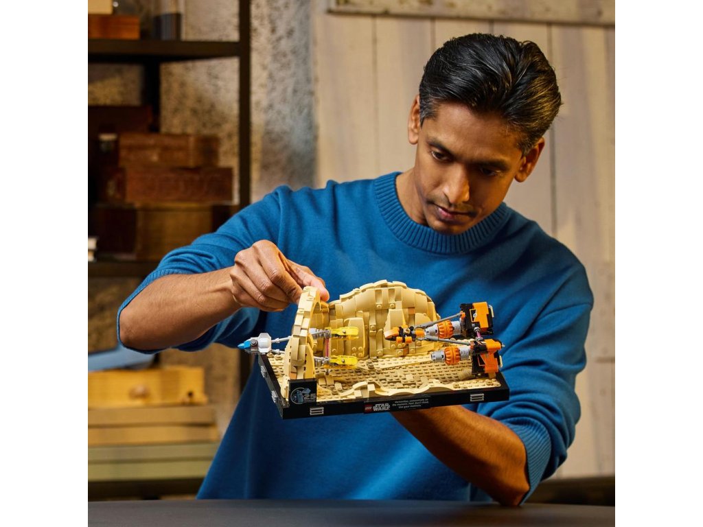 Zachyťte kultový moment z napínavých pretekov klzákov v Mos Espa s modelom diorámy LEGO® Star Wars™ (75380) pre dospelých. Táto zberateľská stavebnica vás pozýva, aby ste nasmerovali svoju Silu tak, ako to urobil Anakin Skywalker v dobrodružstve vo filme Star Wars: Skrytá hrozba a postavili si vlastné preteky klzákov z kociek LEGO, ktoré sa rútia cez Oblúkový kaňon a prenasledujú rivala Sebulba.
