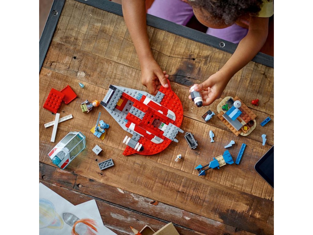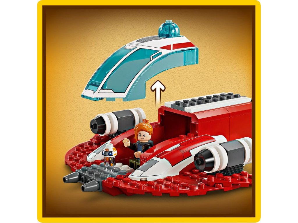 Model má podložku so štartovacou kockou, ktorá dodá deťom istotu do stavania a pomôže im začať, a v lodi je miesto pre všetky 3 proložené postavyStar Wars (minifigúrky LEGO Nash Durango a Nubs, a figúrka droida RJ-83 LEGO) v kokpite. Stavebnica obsahuje aj zostaviteľnú hračkársku spídrovú motorkuStar Wars , ktorá sa vojde dovnútra hviezdnej lode, plus malý trh pre kreatívnu hru.