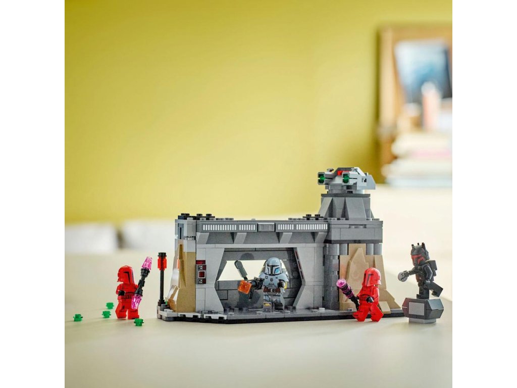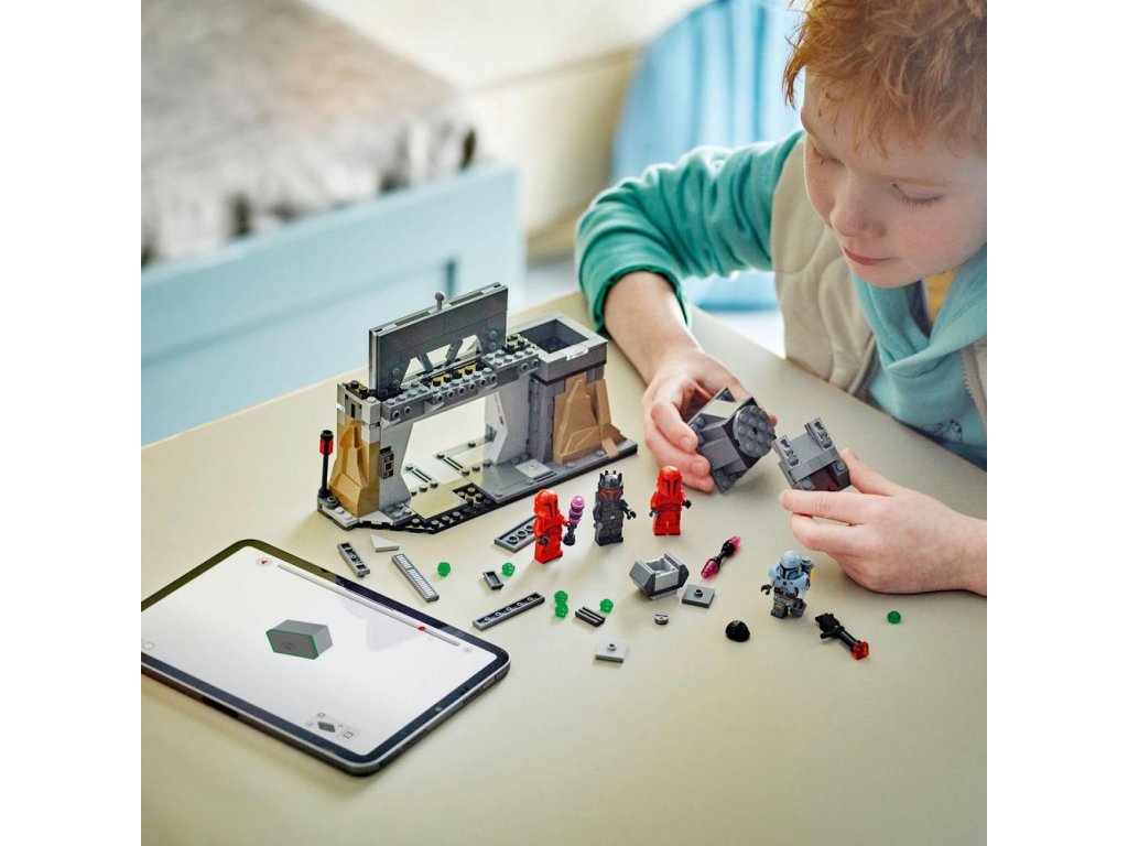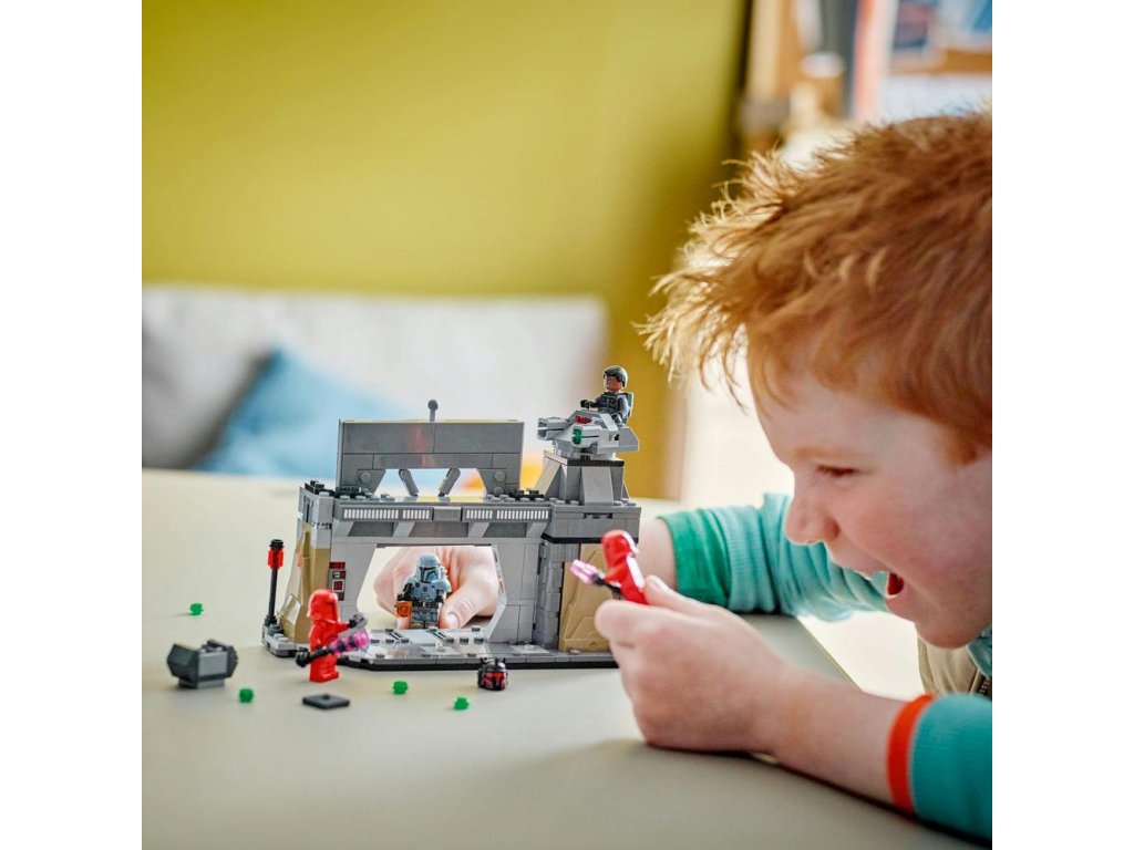 Mandaloriánsku základňu možno pripevniť k zostaviteľnému skalnému útvaru/jaskyni možno pripevniť k 75373 Bojovému jednému Mandalore, predávaný samostatne, a užiť si ešte viac herných možností.