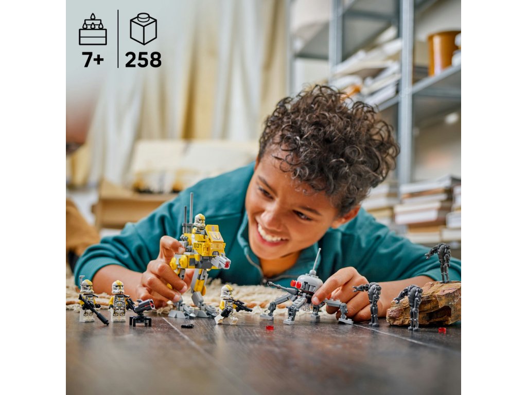 Postavte čatu klonových vojakov z 327. hviezdneho zboru a vzoprite sa super Bojovým droidom s týmto Bojovým balíčkom LEGO® Star Wars: Pomsta Sithov (75431) pre deti. Stavebnica obsahuje 4 minifigúrky LEGO Star Wars™ klonových vojakov v ikonických uniformách 327. hviezdneho zboru a 3 figúrky LEGO super Bojových droidov. Táto Star Wars stavebnica obsahuje aj chodca AT-RT s kokpitom pre minifigúrku LEGO, vystreľovač projektilov, úložný priestor na blaster a ďalekohľad a vežu s vystreľovačom projektilov pre klonových vojakov. Super Bojoví droidi majú zasa Pavúčieho droida, ktorý inšpiruje deti k epickým bitkám.