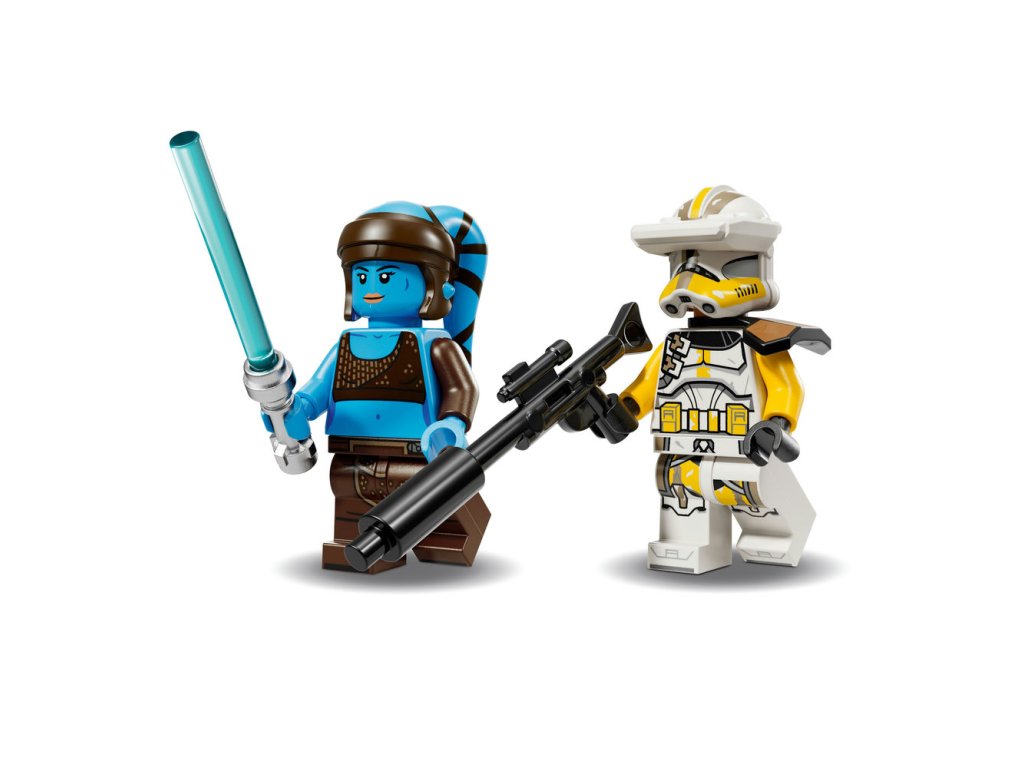 - Postavy LEGO® Star Wars™ – Minifigúrky LEGO Veliteľa Bly a Aayly Securo, 3 figúrky LEGO Komando droidov, figúrka LEGO Bojového droida – pilota a 6 figúrok LEGO Bojových droidov s doplnkami