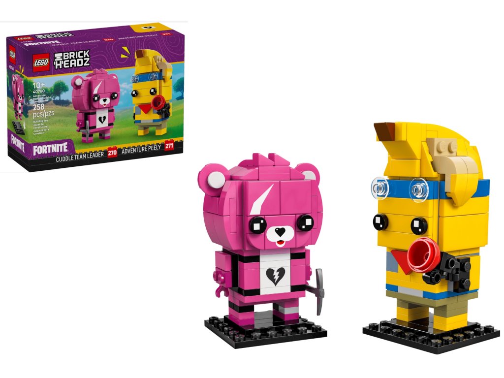 - Figúrky z videohry – Postavte si 2 ikony LEGO® Fortnite® so stavebnicou LEGO® Fortnite® BrickHeadz™ Adventure Peely a Cuddle Team Leader pre deti od 10 rokov