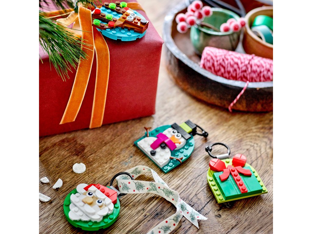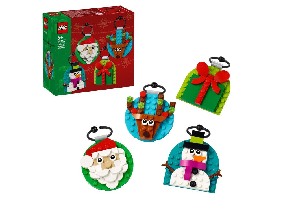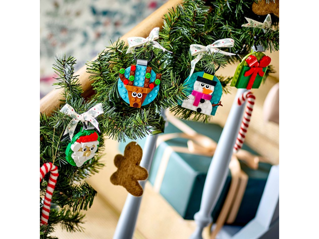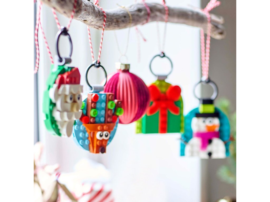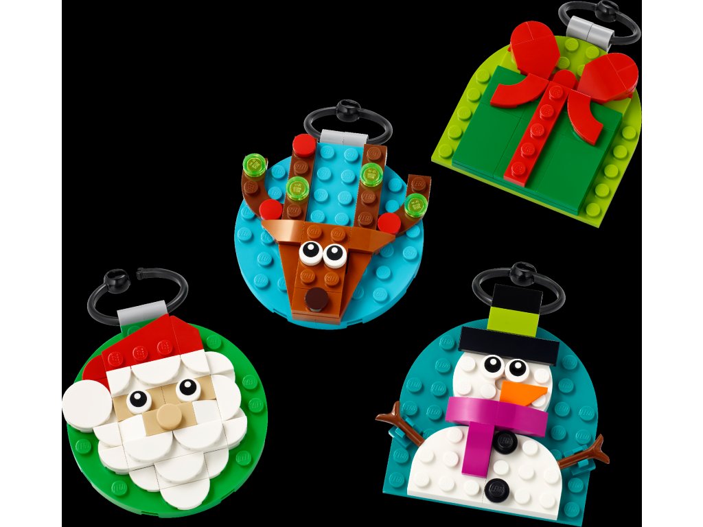 - Vianočné ozdoby LEGO® – Postavte si štyri farebné ornamenty na vianočný stromček: darček, Santu, snehuliaka a soba