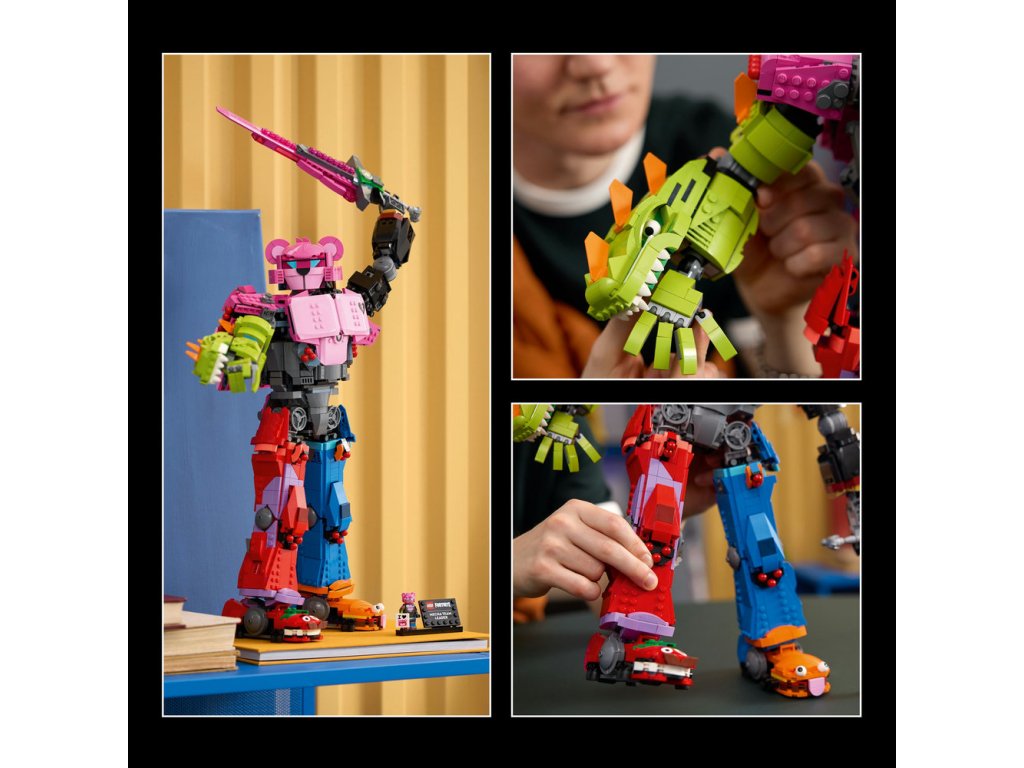 Dekoračná figúrka bude skvelým darčekom pre gamerov a fanúšikov LEGO Fortnite a po vystavení zaručene zapôsobí na všetkých hostí. Stavebnica navyše obsahuje aj bonusové digitálne predmety: skin Mecha Team Leadera a skin Mecha Team Shadowa, ktoré si môžete uplatniť v hrách LEGO Fortnite a Fortnite, takže zábava sa po zostavení modelu nekončí! Stavebnica obsahuje 2 503 dielikov.