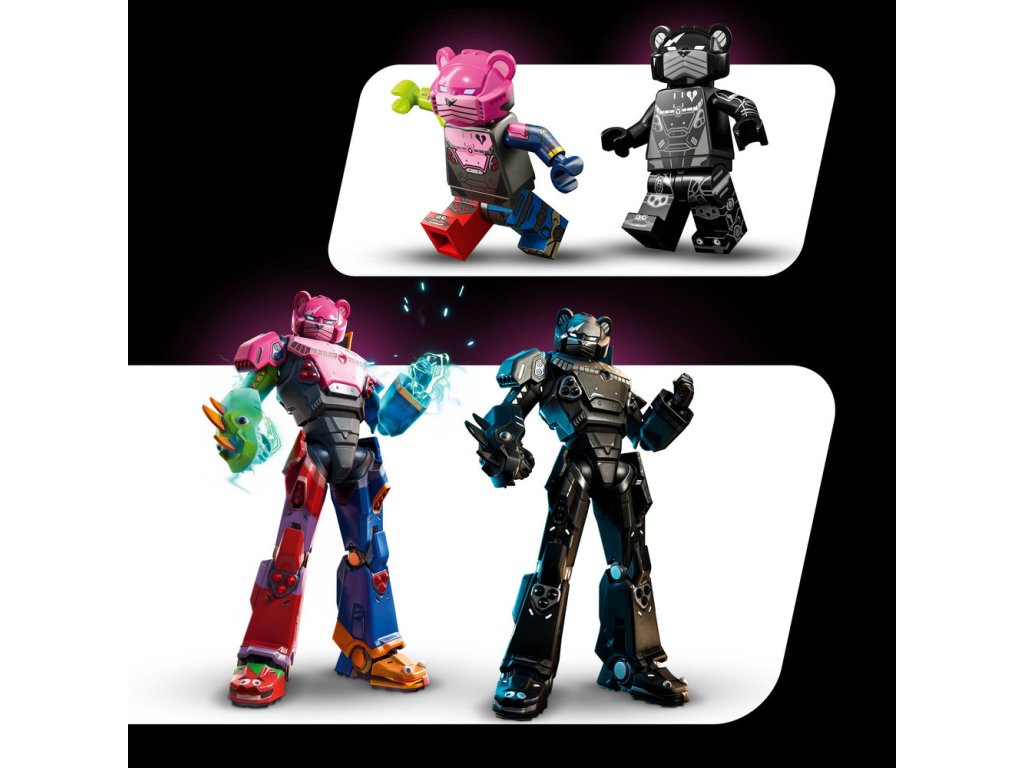 - Digitálny bonus – Táto zberateľská stavebnica obsahuje bonusové digitálne predmety: skin Mecha Team Leadera a skin Mecha Team Shadowa, ktoré si môžete uplatniť v hrách LEGO Fortnite a Fortnite