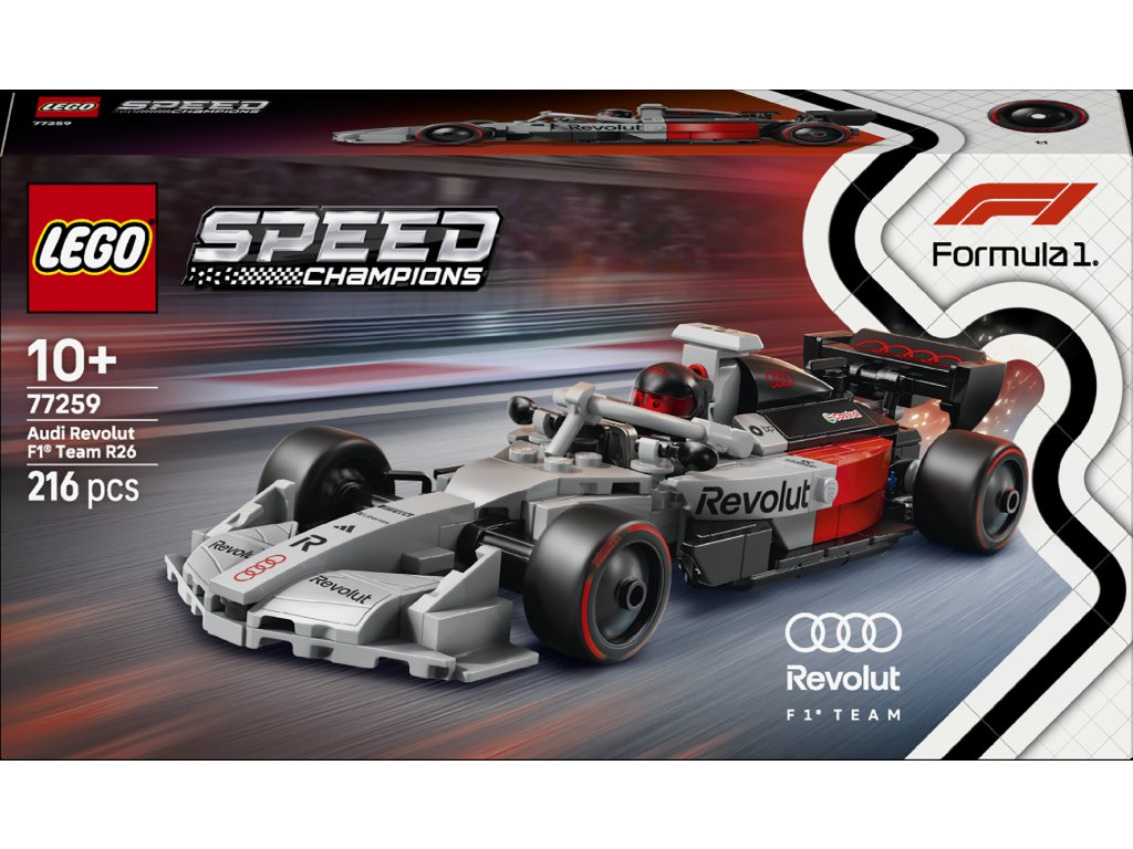 Chlapci a dievčatá od 10 rokov môžu zbierať, stavať, vystavovať a pretekať s pretekárskym autom LEGO® Speed Champions Audi Revolut F1® Team R26 (77259). Autentický výstavný model nového tímu, ktorý sa do štartovacej zostavy Formula 1® pripojí v roku 2026, sa pýši dizajnovými detailmi v súlade s aktualizovanými predpismi pre vozidlá F1® v novej sezóne. Pretekárskemu autu Audi Revolut F1® Team R26 nechýba kokpit, zadné krídlo, autentické logá sponzorov, odpruženie prednej nápravy ani pneumatiky s potlačou „Pirelli“. Súčasťou hračkárskeho vozidla je aj minifigúrka jazdca Audi Revolut F1® Team v kombinéze tímu s prilbou, ktorého môžete usadiť do kokpitu, aby ste sa zahrali na preteky. Stavebnice LEGO Speed Champions potešia ako skvelý nápad na darček pre deti a fanúšikov áut, vďaka ktorým si môžu vytvárať výstavné modely z rozsiahlej série ikonických vozidiel vrátane ďalších áut F1 (predávané samostatne). Okrem toho môžu pomocou aplikácie LEGO® Builder stavať s istotou – model v nej dokážu približovať, otáčať v 3D prostredí a sledovať svoj pokrok v rámci prehľadného digitálneho návodu. Stavebnica obsahuje 215 dielikov.