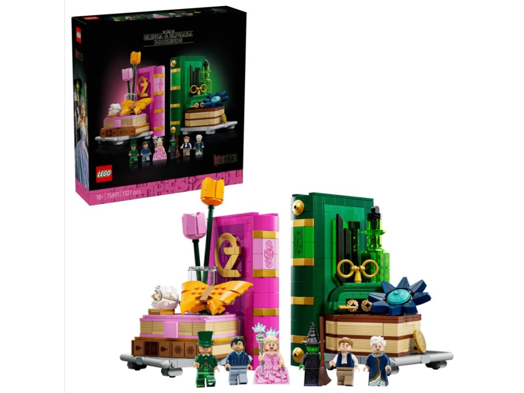 Cestujte do fantasy sveta Wicked vždy, keď si prezeráte svoje knihy s týmito Knižnými zarážkami: Glinda a Elphaba (75691). Dospelí filmoví fanúšikovia sa môžu vydať na magické staviteľské dobrodružstvo a postaviť si ozdobné filmové knižné zarážky LEGO® Wicked na poličky.