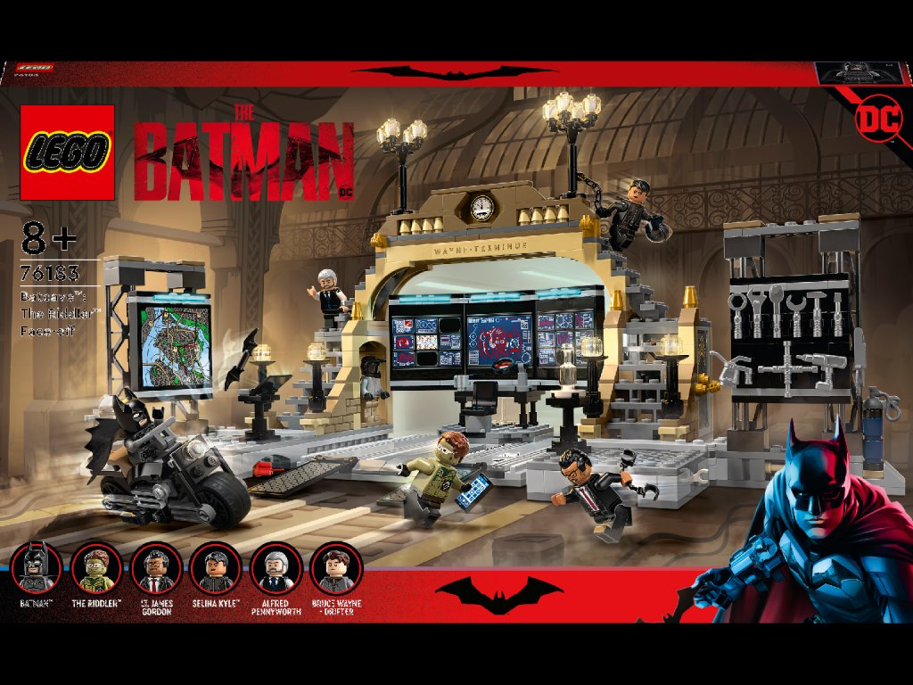Fanúšikovia filmu Batman od 8 rokov môžu svojich superhrdinských kamarátov ohúriť stavebnicou LEGO® DC Batman™ (76183) Batmanova jaskyňa: Súboj s Riddlerom. Batmanova akčná centrála Batmanova jaskyňa je vybavená počítačmi, nástrojmi a zváracími prístrojmi na opravu vozidiel. Dve bočné steny (na jednej je zobrazená mapa mesta GOTHAM CITY™ a na druhej visí úložisko na nástroje) majú pánty, aby ich bolo možné rôzne postaviť a rozšíriť si tak miesto na hranie. Set takisto obsahuje 6 minifigúrok z filmu Batman: Batmana, Selinu Kyle, Riddlera, Driftera, Alfreda a komisára Gordona. 3 doplnky so šifrovanou správou od Riddlera môžu deti prečítať len pomocou špeciálnej lupy. Keď Batman nasadne na motorku, môže sa prezliecť sa svoje alter ego, Driftera. Batmanova jaskyňa má aj vlastnú celu, kam Batman môžu vrhnúť zloduchov. Navyše možno v jaskyni opraviť Batmobil zo stavebnice Batmobil: Naháňačka s Penguinom (76181; nie je