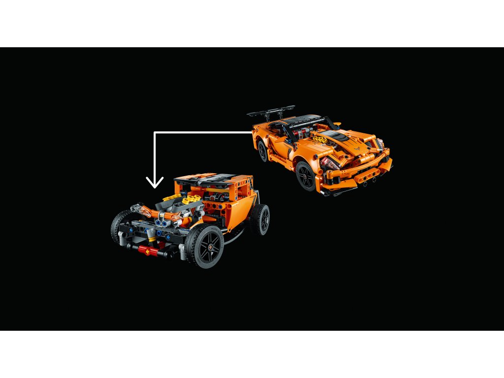 Pretvor túto technickú dokonalosť pomocou stavebnice 42093 Chevrolet Corvette ZR1 od LEGO® Technic. Tento exkluzívny model, vyvinutý v spolupráci s Corvette, naozaj vystihuje podstatu tohto kultového super auta a má autentickú oranžovo-čiernu farebnú kombináciu, čierne lúčové ráfiky s nízkoprofilovými pneumatikami, veľký zadný spojler a 4 výfuky. Táto napodobenina Chevrolet Corvette ZR1 taktiež obsahuje funkčný volant a viditeľný detailný motor V8 s pohyblivými piestami. Prestavaj si tento úžasný model 2 v 1 a vytvor realistickú napodobeninu Hot Rod.