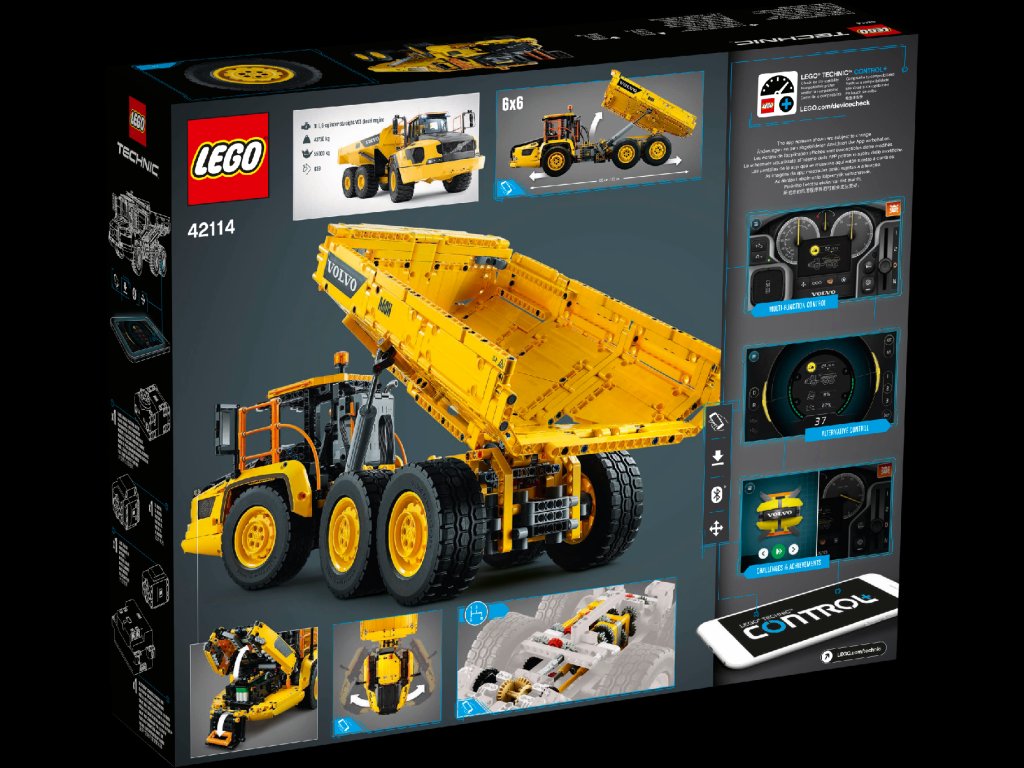 - Tento kĺbový vyklápač Volvo 6x6 (42114) zo série LEGO® Technic deťom ukazuje tajomstvá stavebných vozidiel. spustiť aplikáciu v ňom môžu jazdiť, vykladať náklad a radiť rýchlosťou.