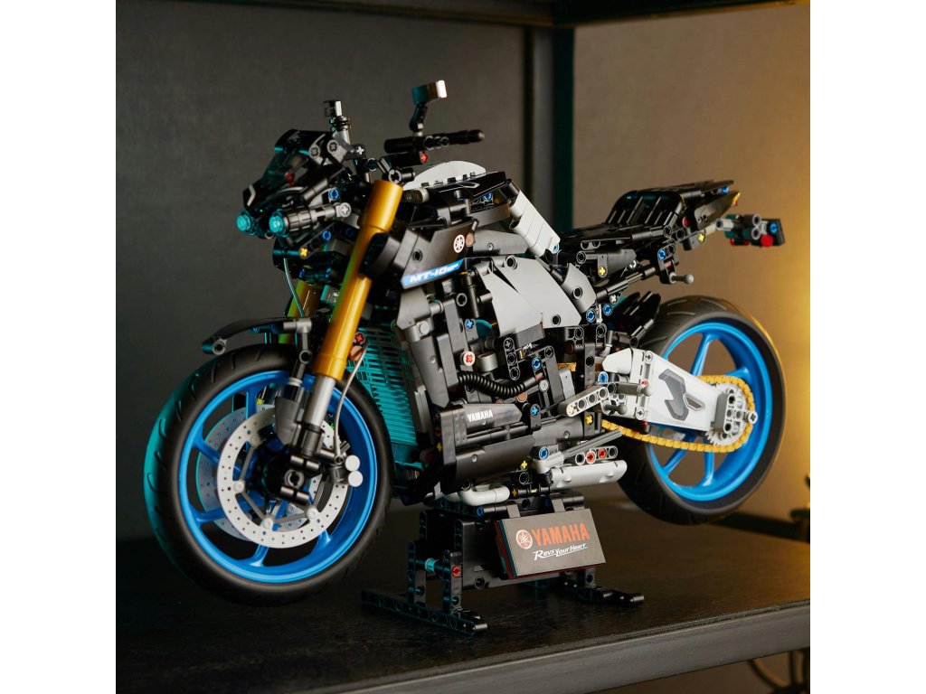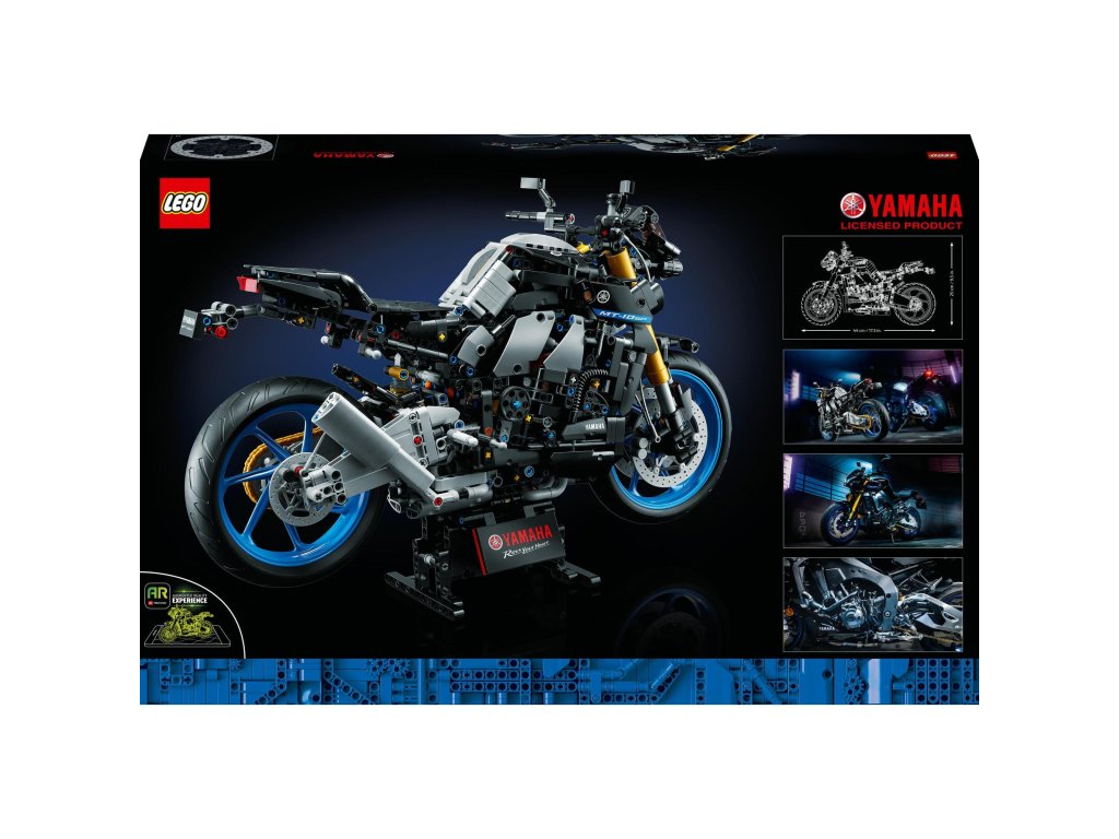Predstavujeme vám staviteľský projekt, ktorý nadchne všetkých dospelých fanúšikov motoriek. Tento model LEGO® Technic Yamaha MT-10 SP (42159) je poctou najvýkonnejšiemu motocyklu Yamaha v kategórii „hyper naked“. Jeho zjednodušený dizajn zvýrazňuje krútiaci sa štvorvalcový motor. Preskúmajte aplikáciu LEGO AR a sledujte, ako model ožije. Autentické detaily Každý premyslený detail bol navrhnutý tak, aby čo najvernejšie zodpovedal skutočnému modelu Yamaha. Medzi jeho prvky patrí štvorvalcový motor, 3-stupňová prevodovka a reťazový prevod s funkčným predným a zadným odpružením. Prvky prevodovky zasa zahŕňajú radiaci bubon a vidličku, krúžok na radenie rýchlostí a račňový bubon. Model obsahuje aj funkčné riadenie prostredníctvom vstupov na riadidlách, bočný stojan a výstavný podstavec. Naštartujte motory Tento model je súčasťou kolekcie stavebníc LEGO pre dospelých. Stavebnica bude vašim novým projektom, al