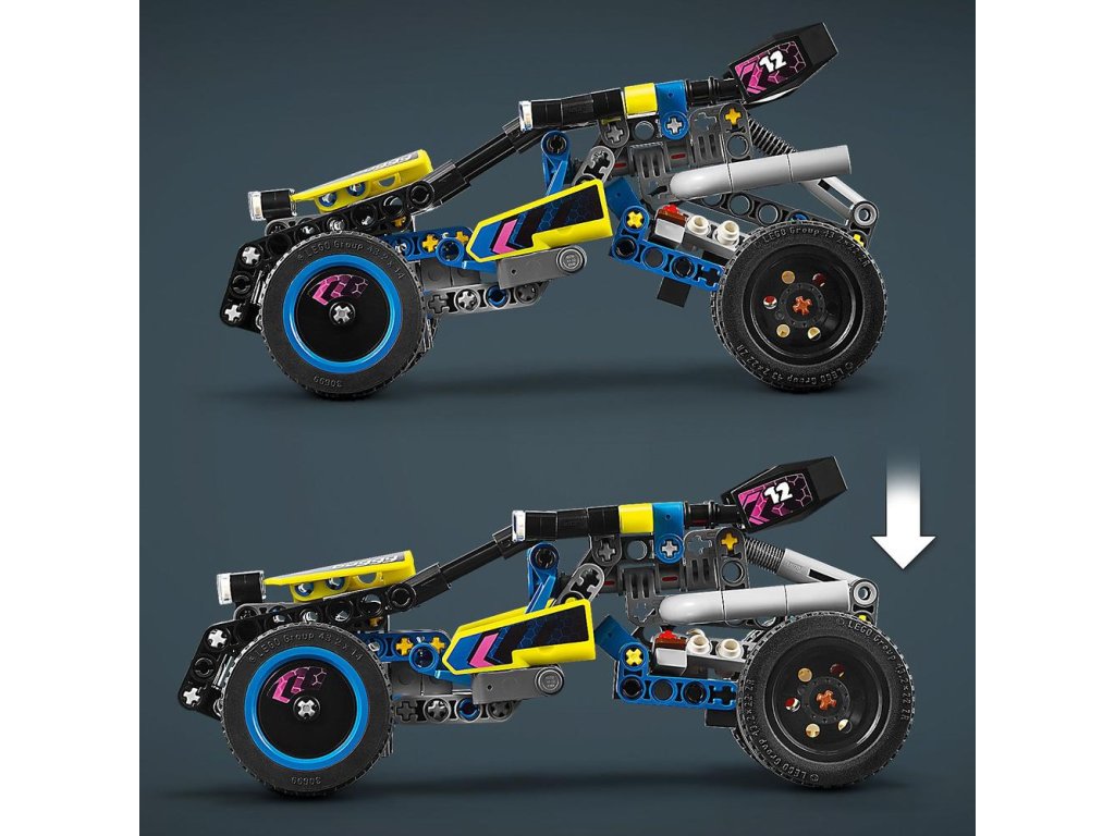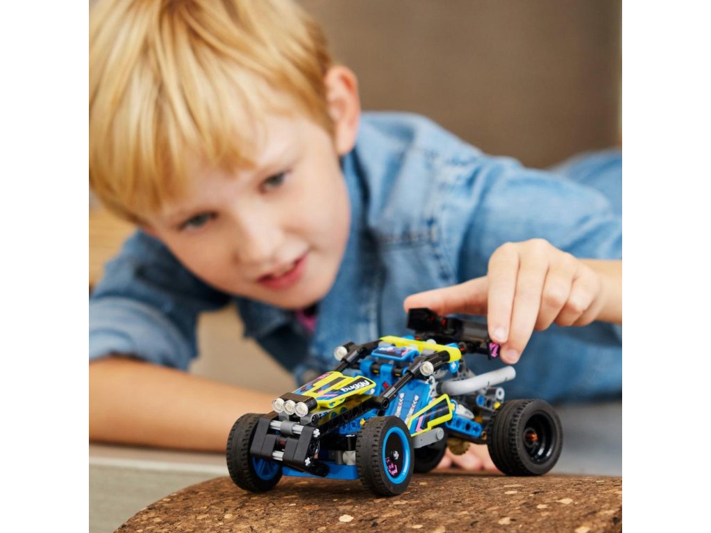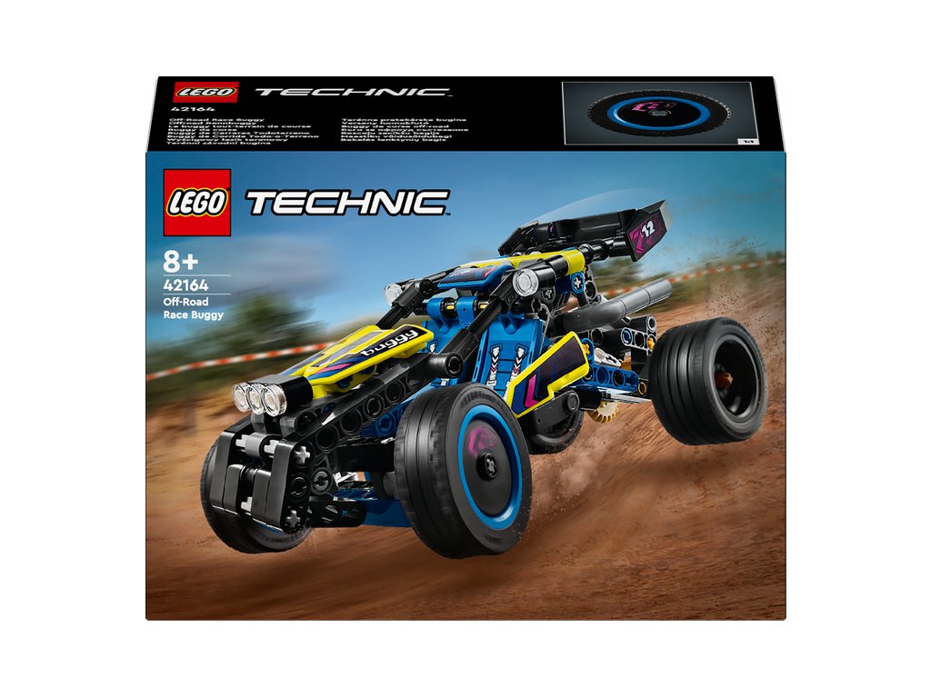 Mladí stavatelia môžu rozvíjať svoje zručnosti pri zostavovaní Terénnej pretekárskej buginy LEGO® Technic (42164) a následne svoj model vziať na skúšobnú jazdu. Bugina obsahuje autentické detaily inšpirované skutočnými pretekárskymi buginami vrátane zadného odpruženia, pohyblivého štvorvalcového motora a parádneho polohovateľného volantu. Táto stavebnica bude skvelým darčekom pre malých milovníkov vozidiel a hračkárskych pretekárskych áut.