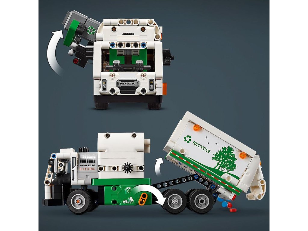 Toto hračkárske recyklačné auto je inšpirované najmodernejším elektrickým smetiarskym autom Mack a vyznačuje sa realistickým pohybom a funkciami.